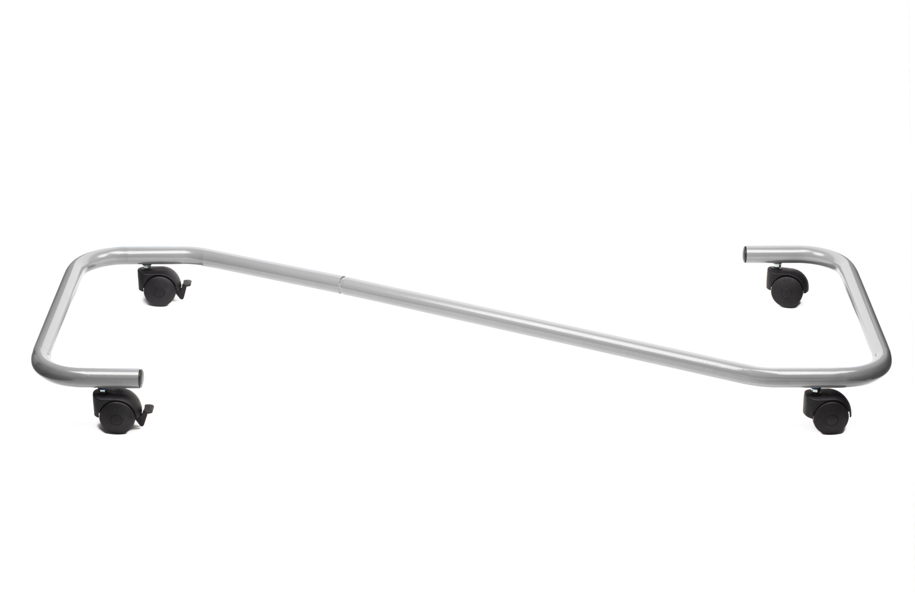 Ställning i grålackerad metall med 4 hjul varav 2 är låsbara. Underlättar förflyttning och passar till stapelbar säng, artnr 120742. Kan stapla 12 sängar.