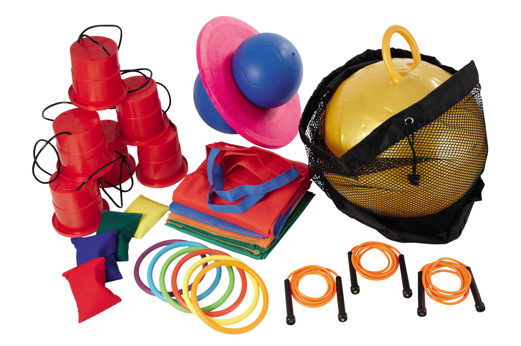 Ett perfekt samlingspaket med produkter för att träna balans, koordination och motorik. Innehåller: 1 moonhopper, 1 hoppboll ø 50 cm, 3 hopprep, 3 par trampkrukor, 4 ärtpåsar, 4 hoppsäckar, 6 aktivitetsringar och 1 bollpåse. Små variationer kan förekomma. Från 3 år.