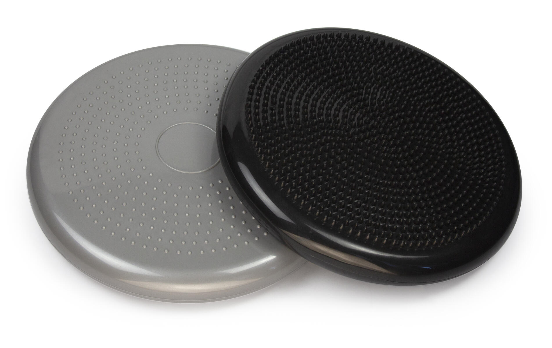 Luftfylld balanskudde som underlättar ergonomi och rastlösa ben i klassrummet. Eleverna kan därmed röra sig utan att tappa koncentrationen för en ökad studiero. Sittkuddens knottriga sida ökar blodcirkulation och känselstimulering. Kuddens andra sida med små kulor passar perfekt att sitta eller stå på. Placera kudden på en stol eller lägg den direkt på golvet för balansövningar, massage och muskelträning. Mått: 33 cm. Material: Ftalat-fri PVC. Från 3 år.