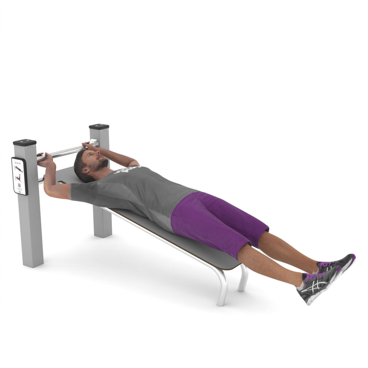 Workout är en serie träningsredskap främst avsedda för träning med kroppsvikten som utgångspunkt. Bas i pulvergalvaniserat och pulverlackerat stål. Färgen silver (-99) är tillverkad helt i rostfritt stål. Har en aluminiumskylt med träningsinstruktioner och QR-kod som leder till ett kort videoklipp med instruktioner. Sitsar och ryggstöd är tillverkade i tåligt högtryckslaminat. Leverantörens artikelnummer Workout 2305