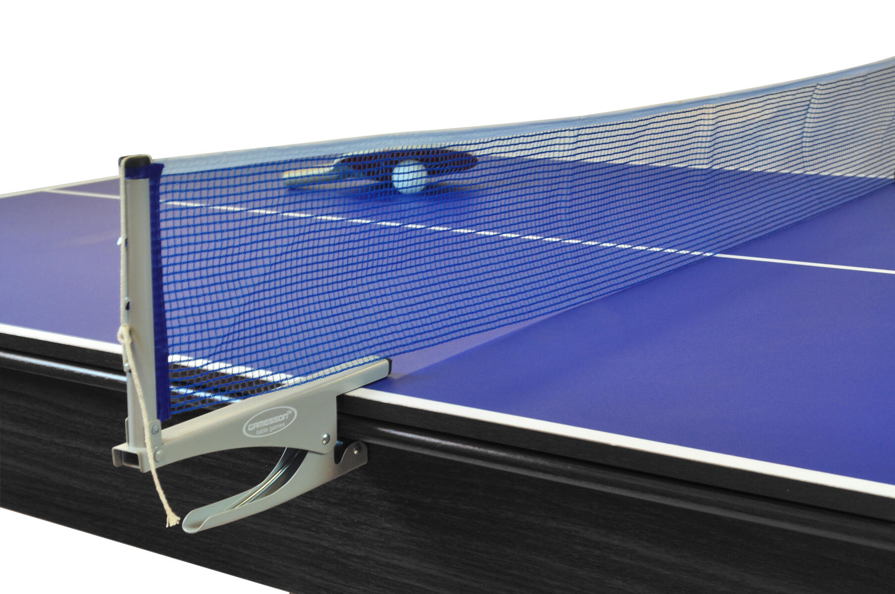 Ett kombinerat bord som har många möjligheter och kan användas både till biljard och bordtennis. Stabil konstruktion i MDF. Justerbara ben. Lämpligt för skolor och fritidshem. Biljardbollar, 2 köer 140 cm, triangel, kritor, borste, bordtennisbollar, bordtennisnät med stolpar och 2 bordtennisracketar ingår. Mått: B101xL184xH80 cm. Spelyta biljard 168x87 cm, bordtennis 184x101 cm. PVC-fri. Levereras omonterat. Från 7 år.
