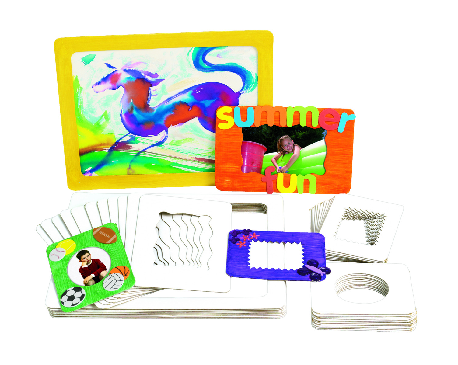 25 st/fp. För egna teckningar, urklipp, foton m.m. Ramarna kan målas, dekoreras med paljetter, glitter etc. Satsen innehåller 5 st av vardera A3, A4, A5, A6 och A7. Vit fram- och baksida. 400 g. Av syrafritt papper.