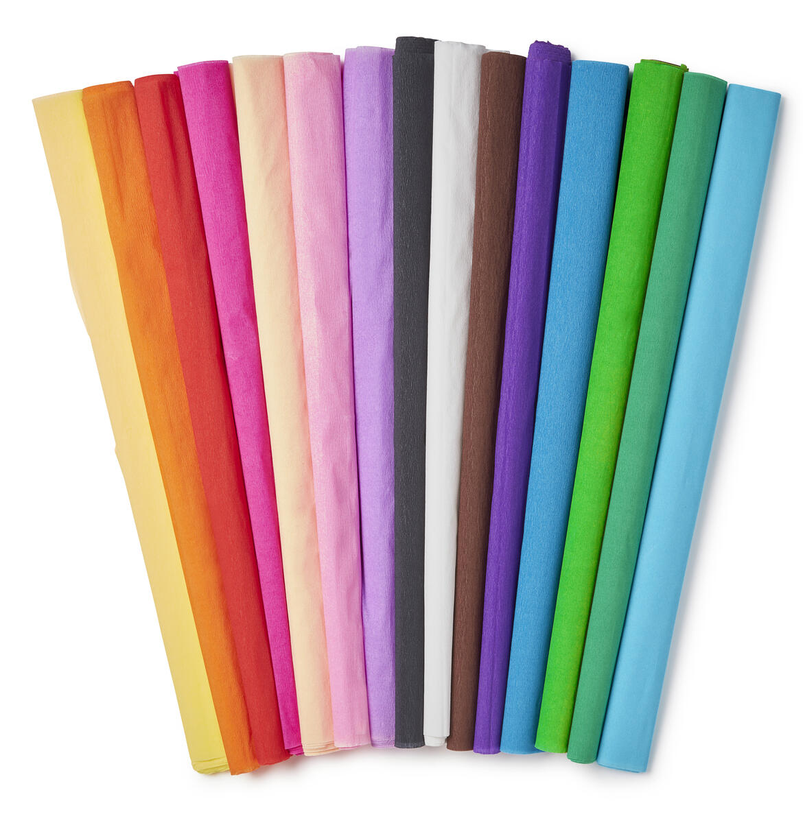 Storpack med kräppapper för hobbyarbeten. 50x250 cm/rulle. 10 rullar av vardera 15 färger/fp.