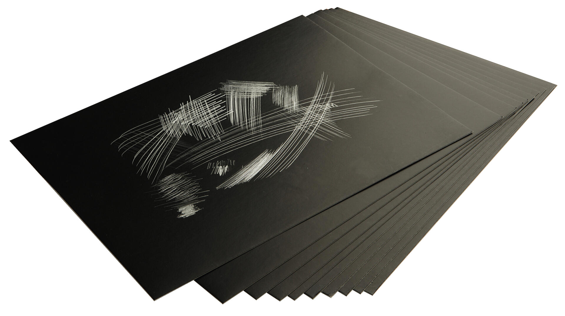 10 st/fp. Är belagd med ett vitt kritlager överdraget med svart tusch. 1 Skrapkniv ingår.
