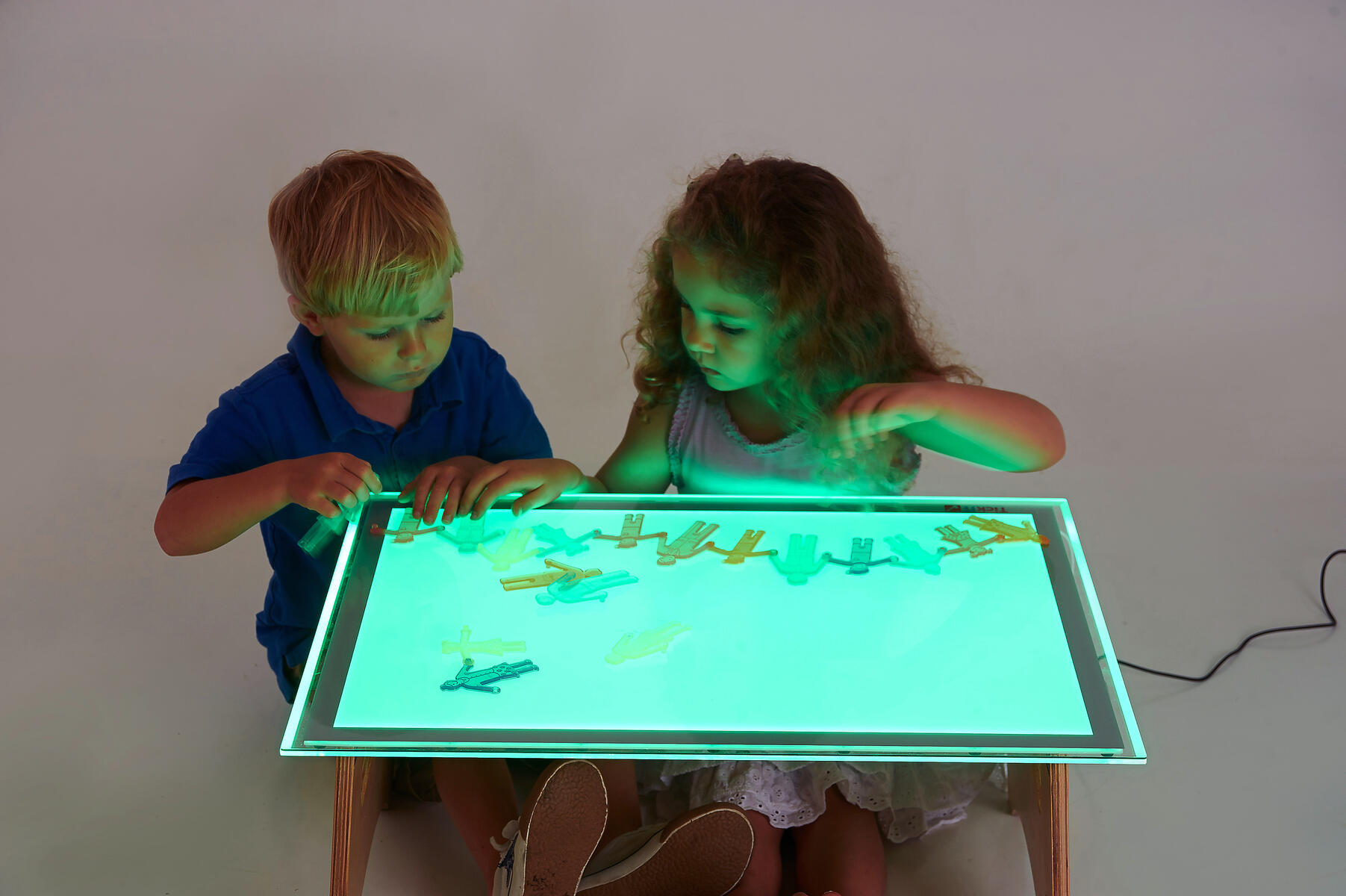 Ett ljusbord som belyser föremålen underifrån och erbjuder en mängd varierande aktiviteter. Med hjälp av fjärrkontrollen kan man välja mellan 20 olika färger, eller ställa in så att färgerna skiftar automatiskt. På ett kreativt vis uppmuntras barnen att experimentera och undersöka med olika tekniker och färger. LED-belysning med brinntid på 50 000 h.
