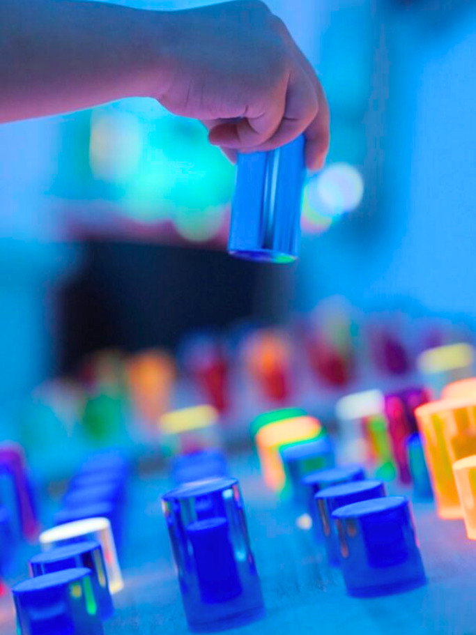 Detta lysande bord kan ställas in på en färg eller att skifta mellan 16 olika nyanser. Används på egen hand eller i samarbete. Robust bord som är lätt att flytta. Barnen når ner till botten vilket gör det möjligt att leka och utforska lera, färg och vatten. Efter 8 timmars laddning kan aktivitetsbordet lysa i 5-10 timmar beroende på ljusprogram. Styrs av fjärrkontroll. Energiklass A+, kapslingsklass IP65. Mått: H50 och ø 75 cm, djup på aktivitetsytan 15 cm. Material: PE. PVC-fri. Används under vuxens översikt.