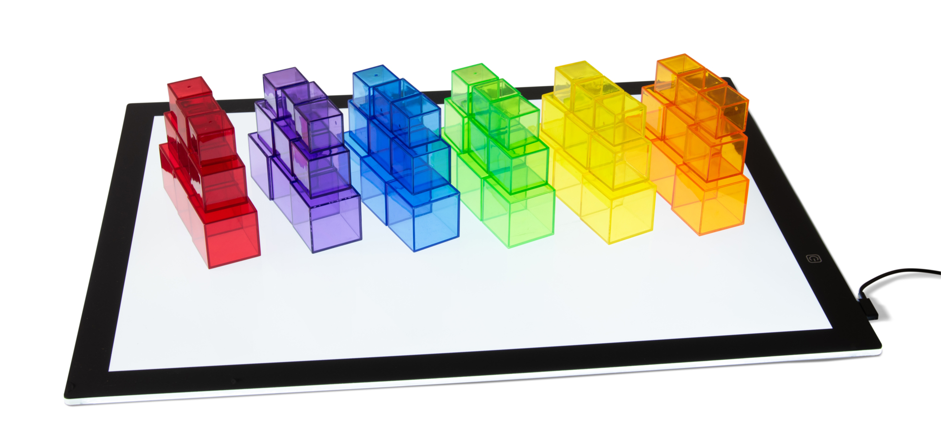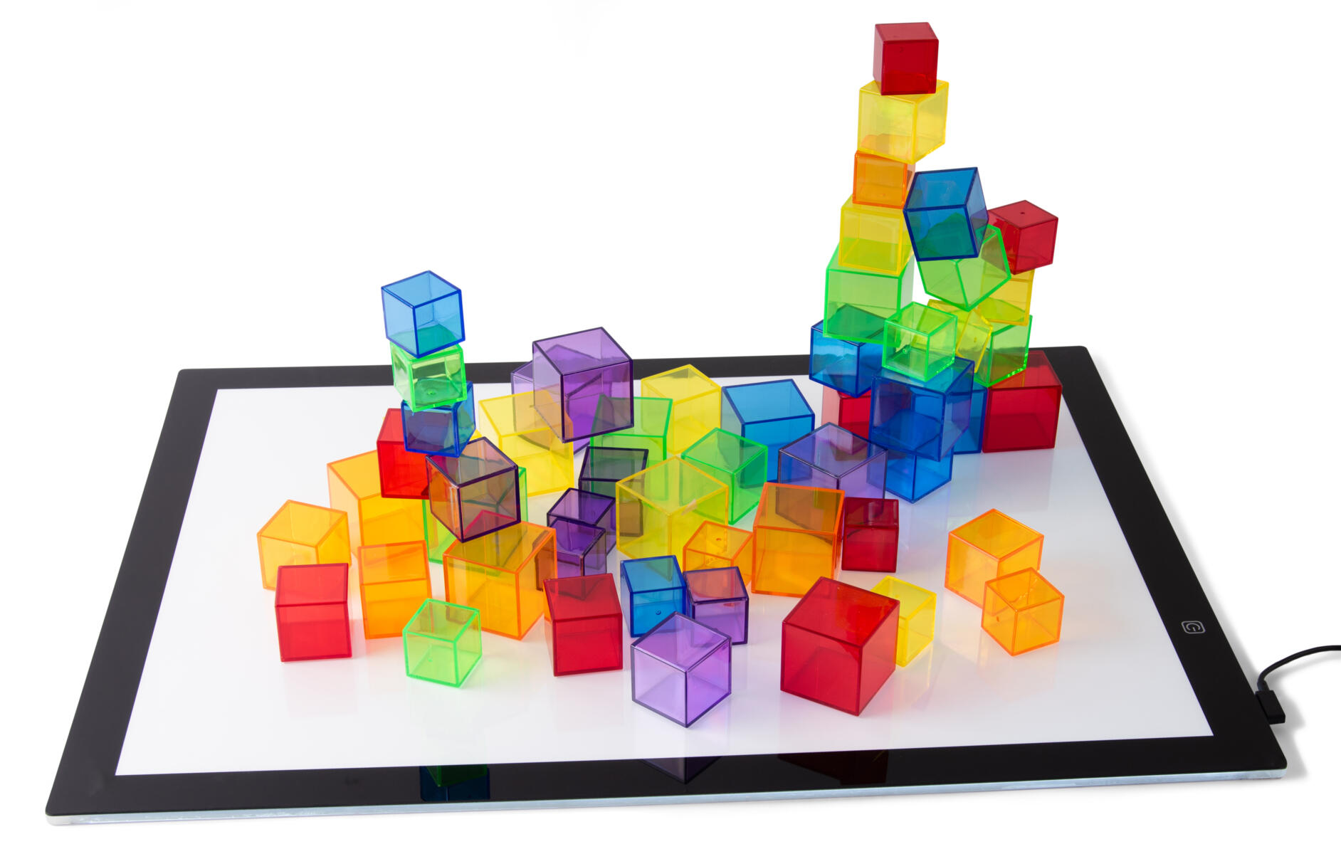 50 st/fp. Gör byggandet till ett sensoriskt äventyr! Klossarna staplas lätt på varandra och skapar olika färger när de överlappar varandra. Används med fördel på ett ljusbord. Mått: 5x6 cm. Material: PS. PVC-fri.