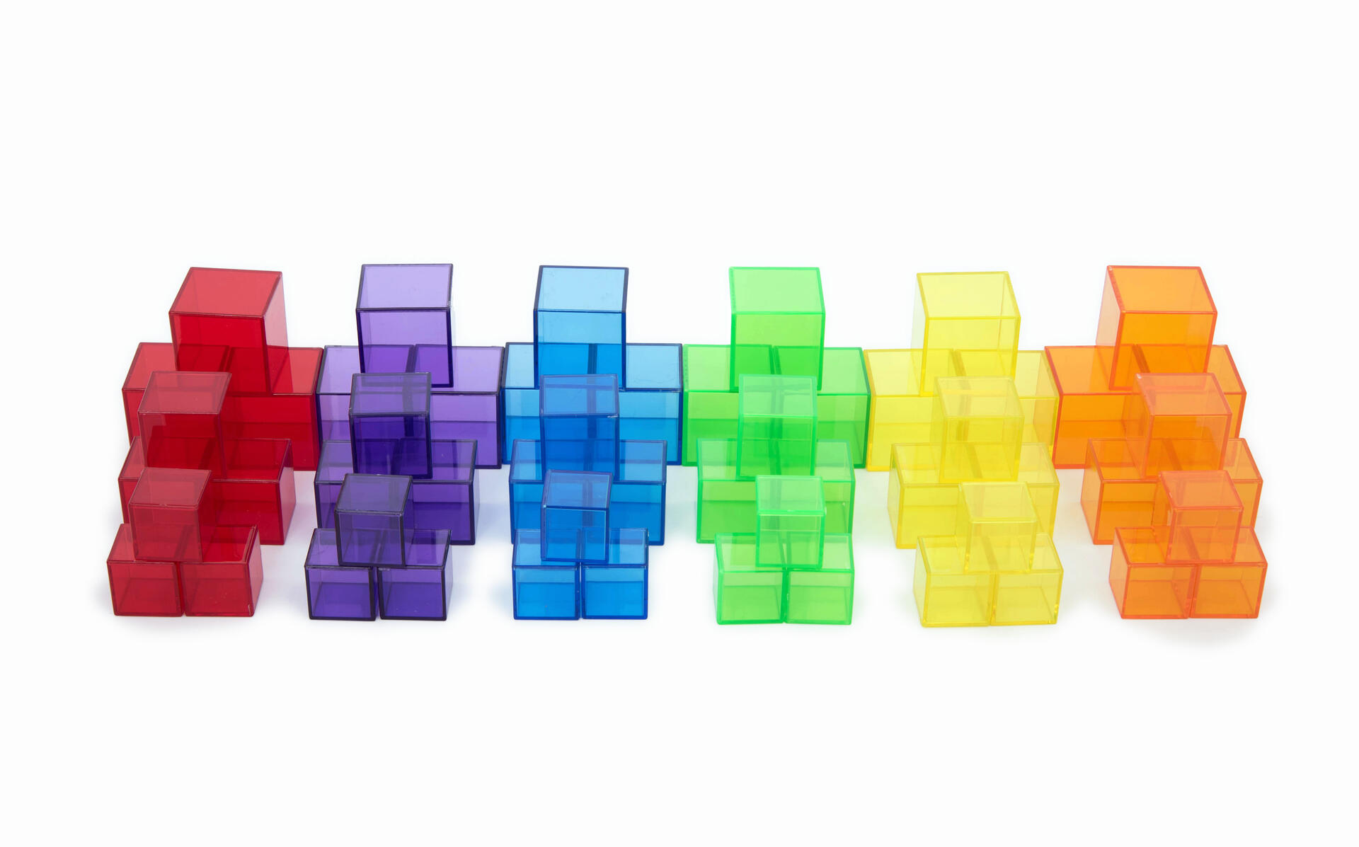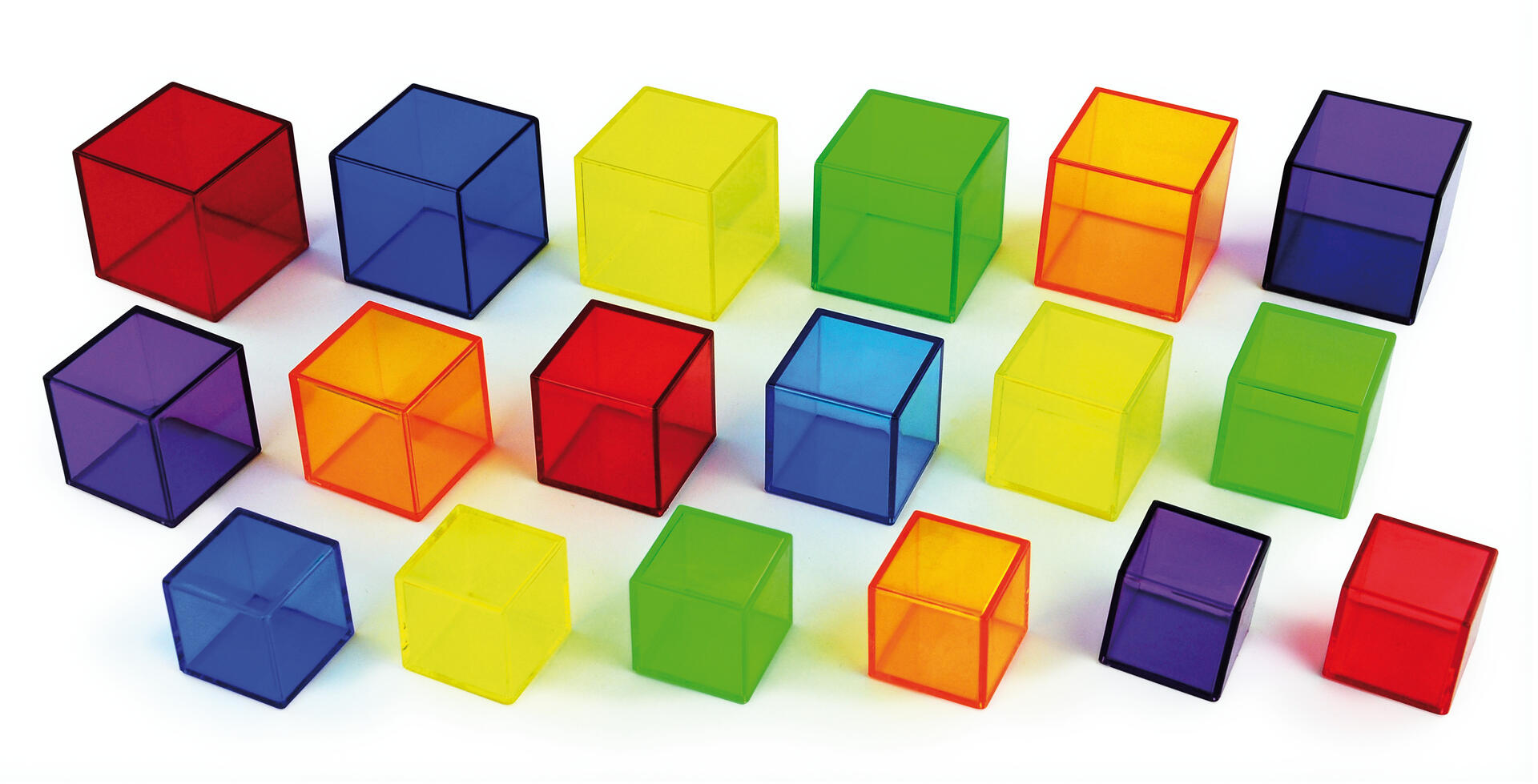 16 delar. Färgade, transparenta byggklossar som inspirerar till fantasifullt byggande. Genom att kombinera klossarna på olika sätt får barnen uppleva förändringar i färger, mönster och rumsuppfattning. Av akrylplast. PVC-fri. Från 3 år.