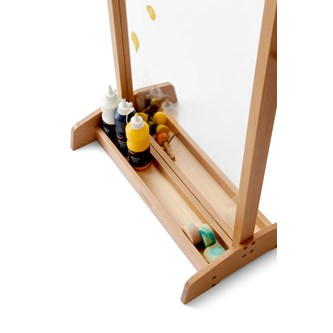 Stadigt tvåsidigt staffli med paneler i plywood. Panelerna är utrustade med clips och förvaringshylla och kan justeras i höjd. Mått: 121x63x60 cm. Levereras omonterat. Monteringsanvisning medföljer. Tillverkat av lackad björk. FSC-märkt. PVC-fri.