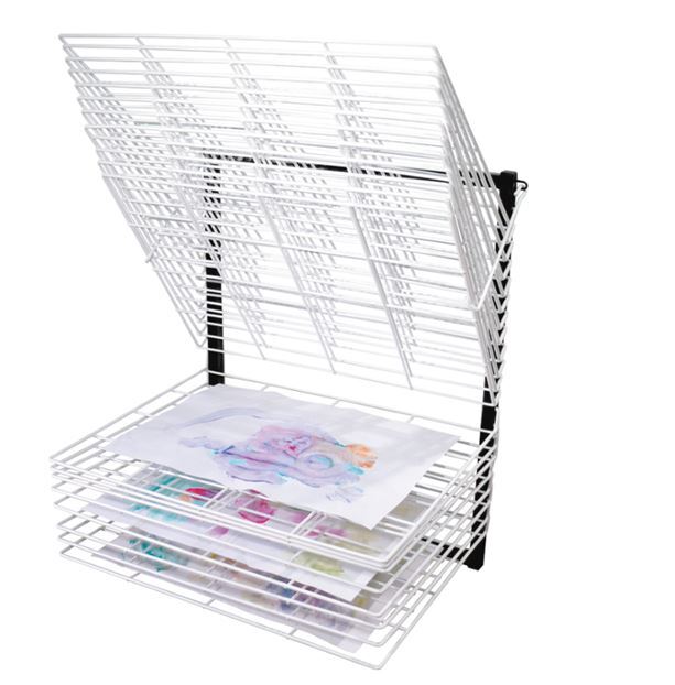 Golvstående torkställning med 20 hyllor, lämplig för A3-papper. Lyftbara hyllor förenklar hantering av material som ska torkas. Storlek enskild hylla: 50x39 cm. Mått: L75xH36xD50 cm. Av stål.