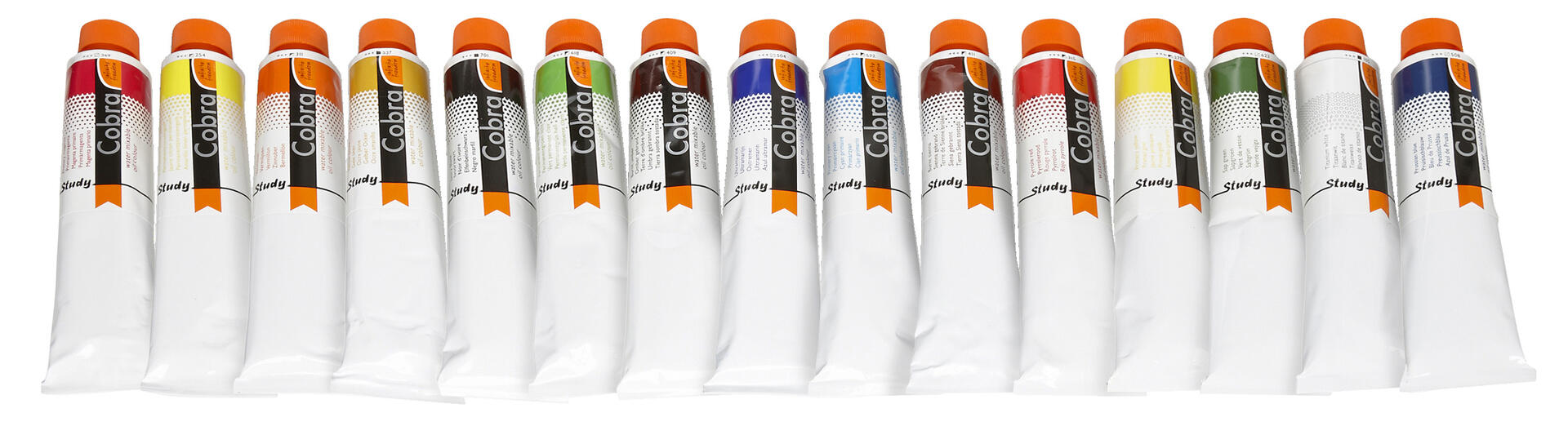 5x40 ml/fp. Cobra är en vattenlöslig oljefärg. Färgen späds med vatten. Tjock och krämig med högt färgpigment. Torkad yta blir vatten- och ljusbeständig. Penslar rengörs lätt med tvål och vatten. Färger som ingår: titanvit, primärgul, magenta, primär cyan och elfenbensvart.