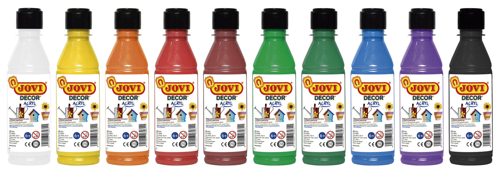 Vattenbaserad, mycket täckande akrylfärg redo att användas. Färgerna torkar jämnt och vattenfast och kan lätt blandas med varandra. Kan användas på de flesta underlag. PVC-fri. Från 3 år.