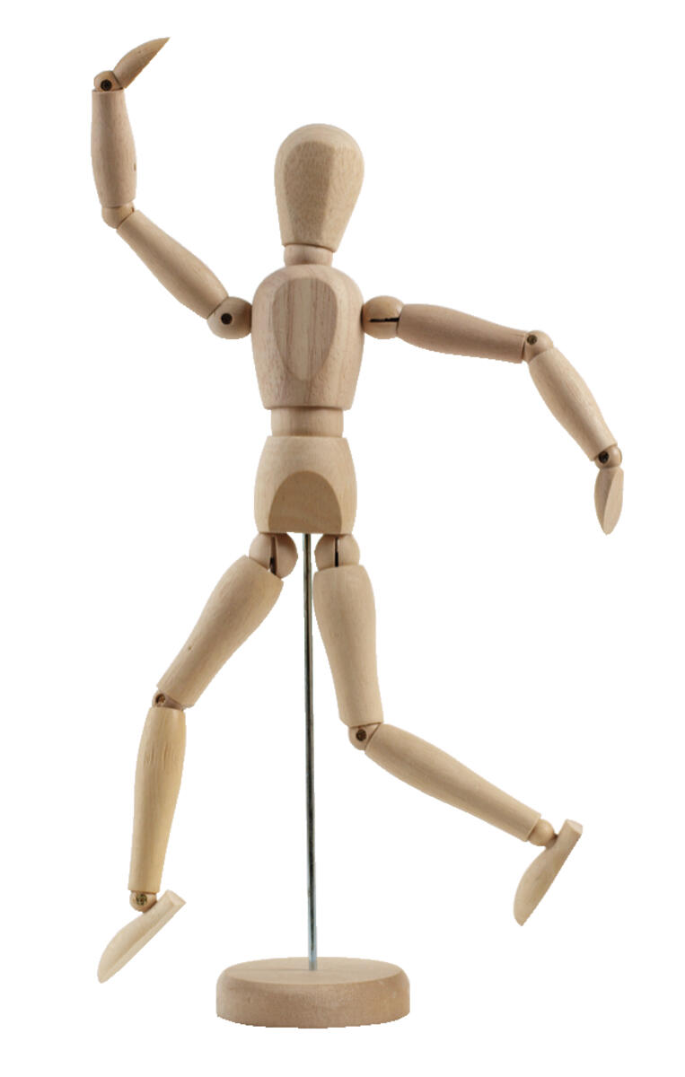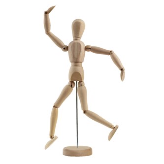 Modelldocka av trä som kan formas i önskad ställning. Man. Höjd 30 cm.