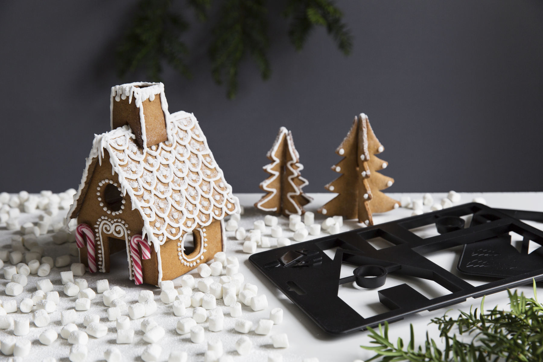 Stansa ut, montera och dekorera. Använd två gånger för ett helt hus. Passar lika bra till arbete i lera som till kakbaket. Stansens mått: 28,5x19,5x1,5 cm.