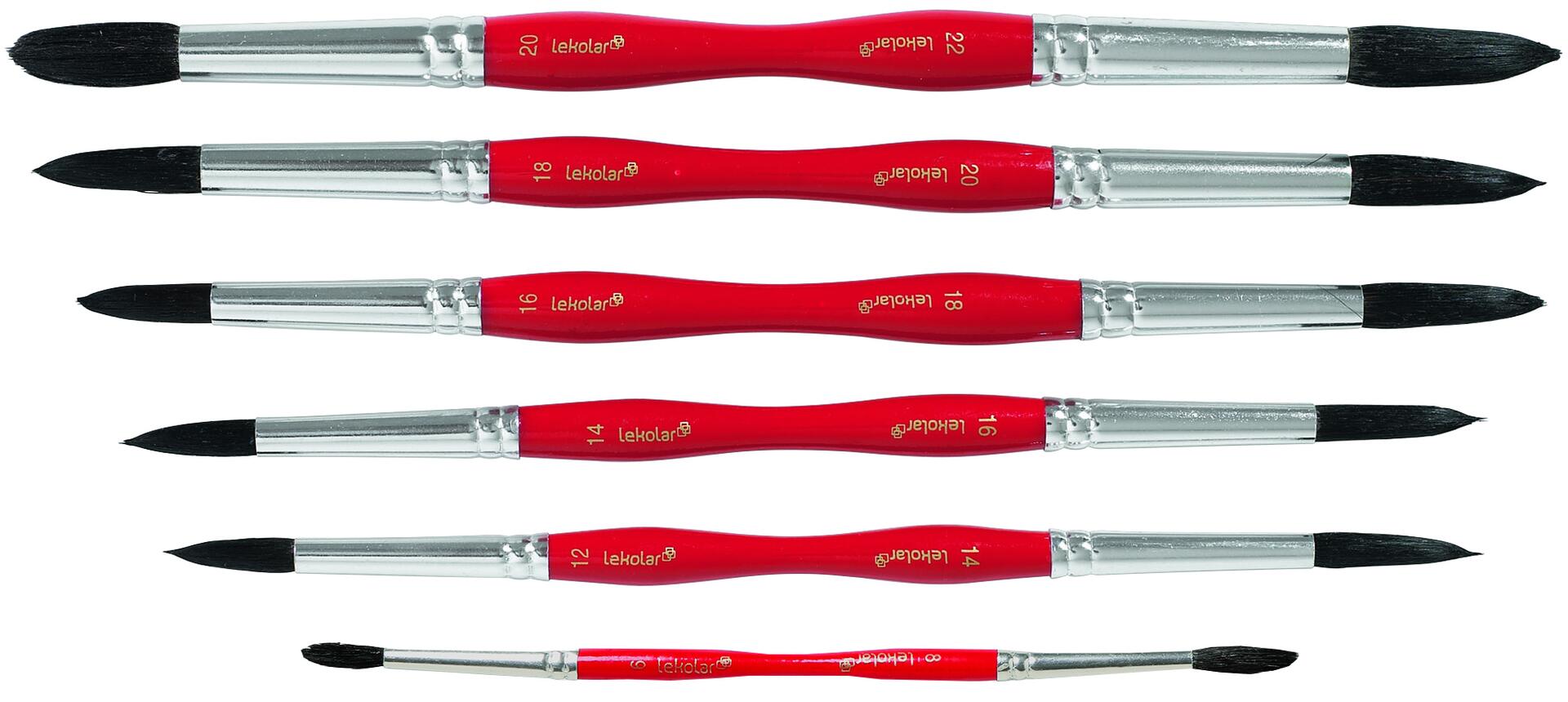 12 st/fp. Penslar med dubbla borst i 2 olika storlekar. Rund borst av mjukt ponnyhår som håller mycket vatten. Med lackerade träskaft. Fina till temperablock, readymix, akvarellfärg etc.