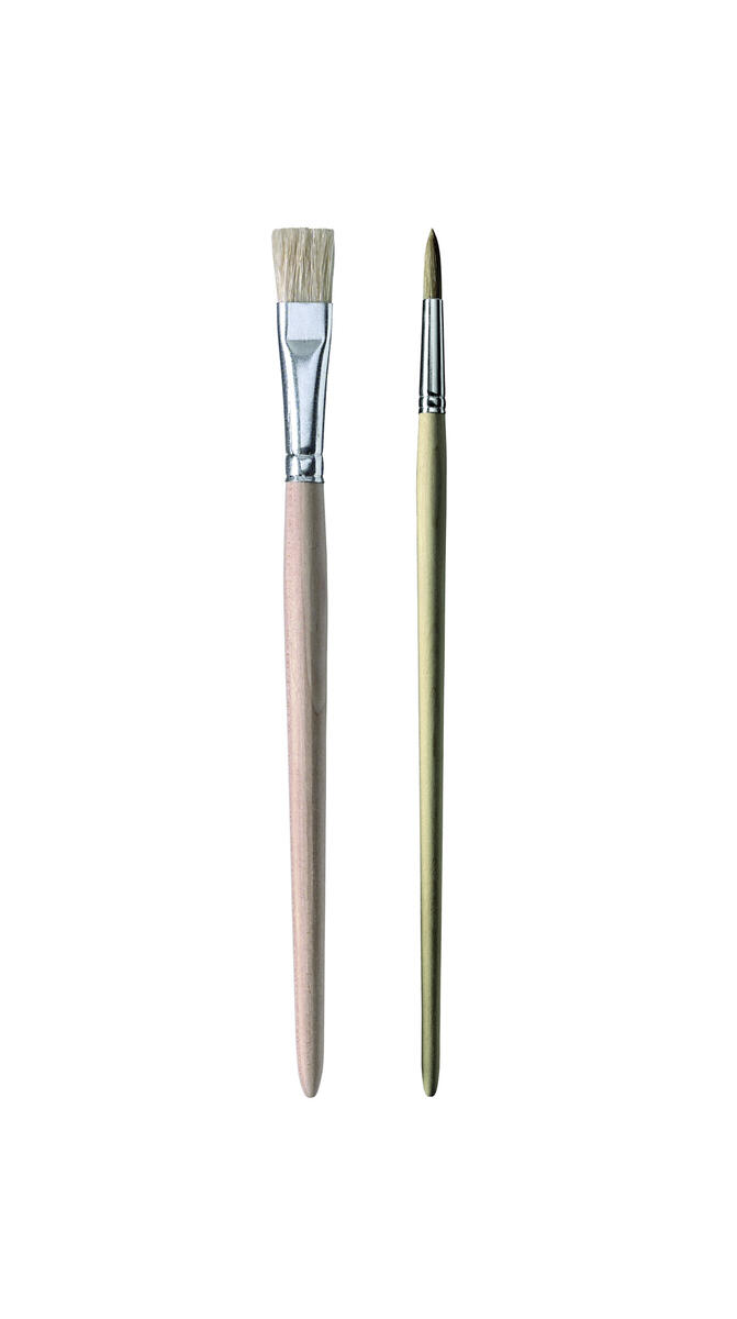 60 st/fp. Hobbypenslar av flat, stadig, vit svinborst med träskaft. Lämpliga för målning med tjockare färg t.ex. olja, akryl, batik eller readymix. Ingår: 12 st av vardera storlek 2, 6, 8, 10 och 20. Skaft ca 12-15 cm. PVC-fri.