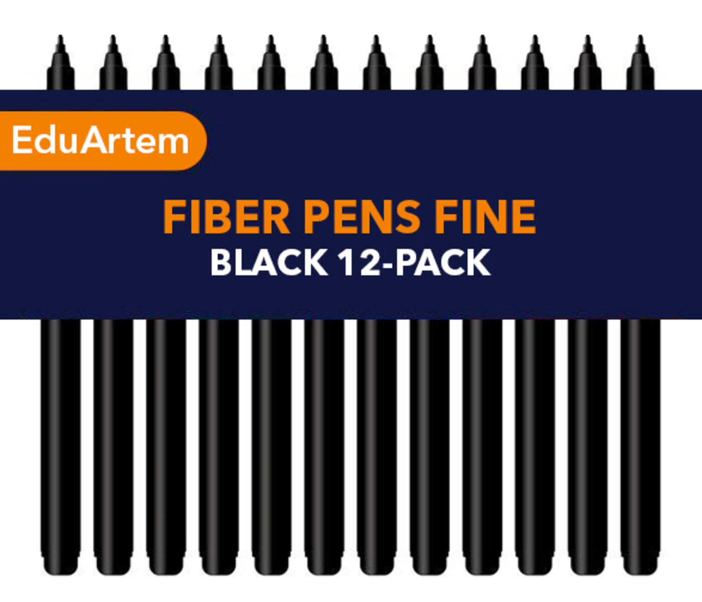 12 st svarta pennor/ask. Fiberpennor av hög kvalitet. Tålig, bred och rundad spets. Flödigt bläck som passar färgläggning av lite större ytor och inte blöder igenom ritpapper. Ventilerad huv och pennkropp av plast. Bläcket kan tvättas bort från kläder, men skydda alltid underlag och textilier vid användande. Linjebredd 0,6 mm. Längd 135 mm. ø 11 mm. CE-märkta. PVC-fri. Från 3 år.