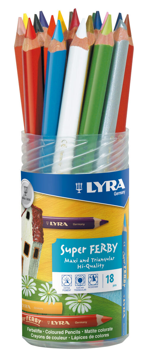 96 st/fp. Lyras mest välkända färgpenna som används av såväl unga amatörer som konstnärer. Trekantsgreppet är ergonomiskt utformat för att inte trötta ut handen. Hellimat färgstift med extra mycket färgpigment bräcks inte om man tappar pennan i golvet. PVC-fri.