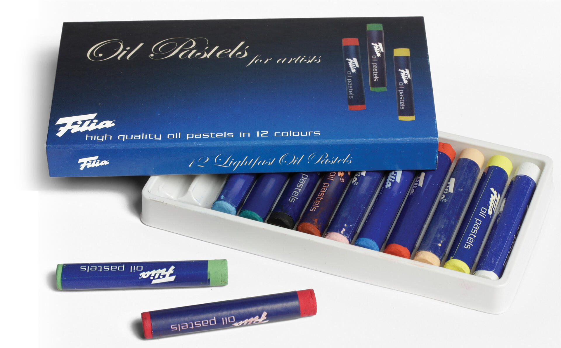 12 st/ask. Vita oljepastellkritor i mjuk kvalitet med hög pigmenthalt. Mycket god täckförmåga på bl.a. papper och duk. Färgerna kan blandas på pappret för att skapa nya nyanser. Passar en rad tekniker. PVC-fri. Från 3 år.