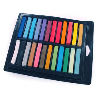 24 kritor/fp. Mjuka och enkla att teckna med, god täckförmåga. Bilder byggs upp i lager och kritan passar att skapa effekter och strukturer med. Med bredsidan skapar man stora, täckande ytor medan de skarpa kanterna är lämplig för detaljarbeten. Passar både papper och duk. PVC-fri. Från 3 år.