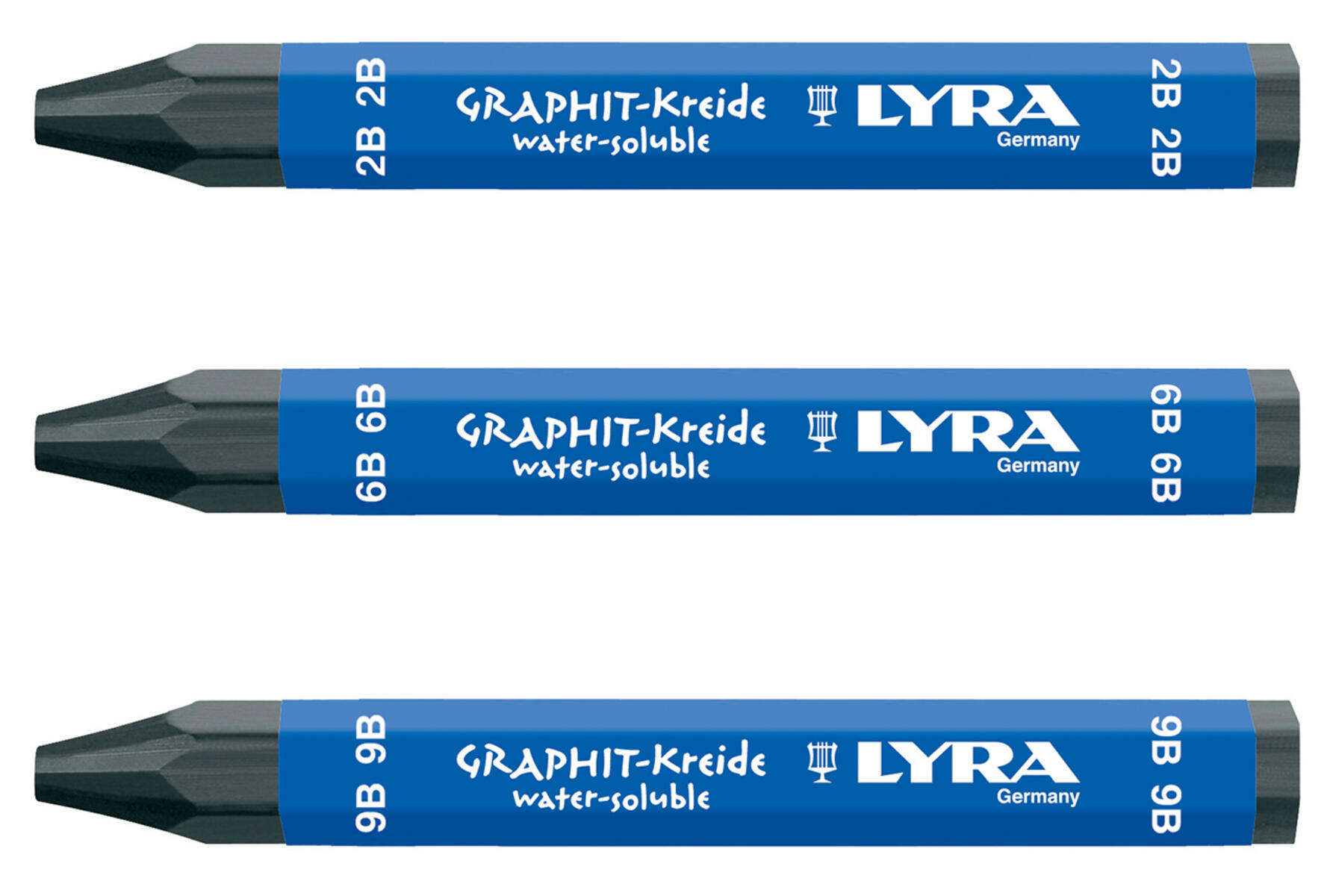 12 st/fp. Grafitkrita med hög koncentration grafit. Både spetsen och hela kritans längd kan användas vid teckning. Löses med vatten efter teckning eller används på fuktat papper för olika effekter. Fixering skyddar ytan på färdigt verk. Konstnärsmaterial.