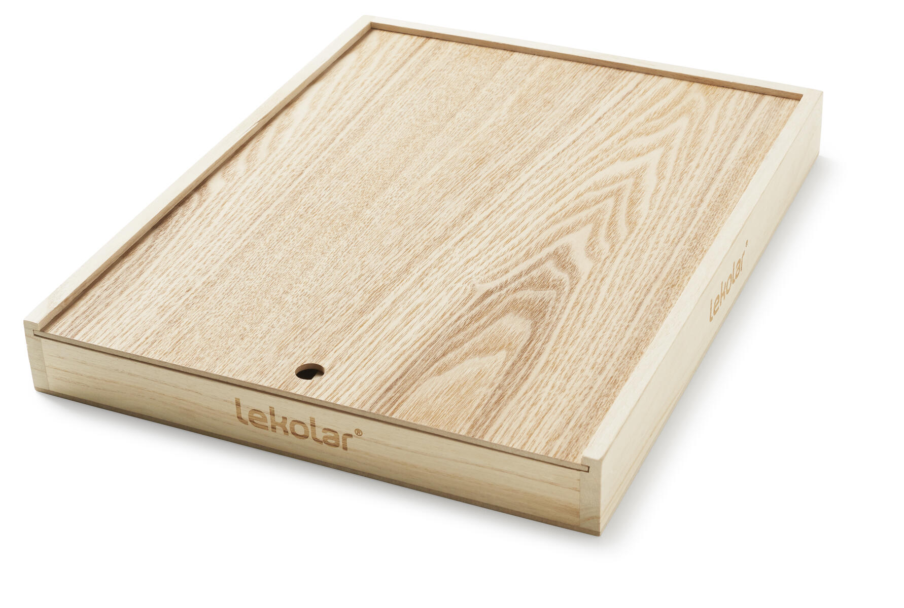 Förvaringslåda i trä som passar färgpennor som är max 180 mm långa. Fungerar även som mobillåda i skolan. Lådan stängs med lock som skjuts in i spår. Mått: L385xB300xH45 mm. Mått på facken L180xB420xH30 mm. Pennor ingår inte. Tillverkad av FSC certifierad björk.