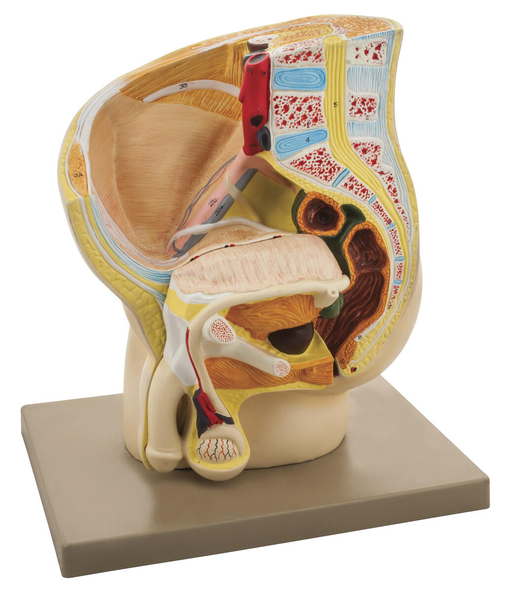 3D-modell av kvinnligt bäcken med avtagbar blåsa och rektum för studie av det kvinnliga reproduktionssystemet. Visuellt hjälpmedel för kurser i medicinsk anatomi och fysiologi.