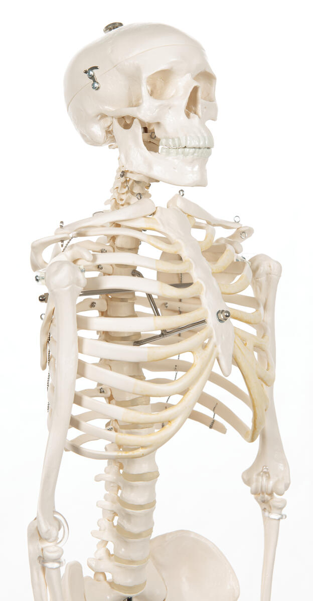 Podium av ABS och kropp av PVC, fri från ftalater. Handmålad i realistiska färger. Obrytbar. Innehåller huvud i två delar, hjärna, två lungor, två hjärthalvor, magsäck, lever, tarmar och bål. Se hur människan är sammansatt. Från 8 år.