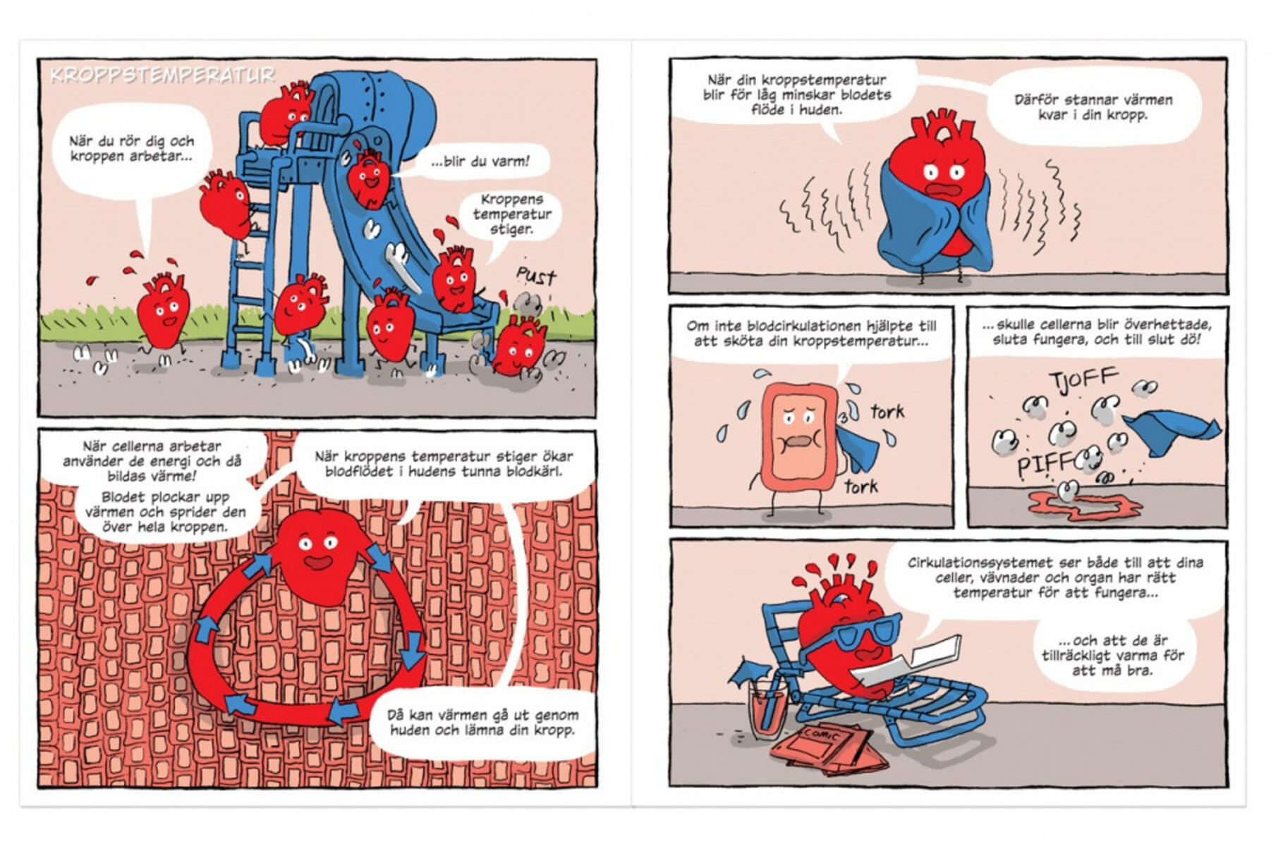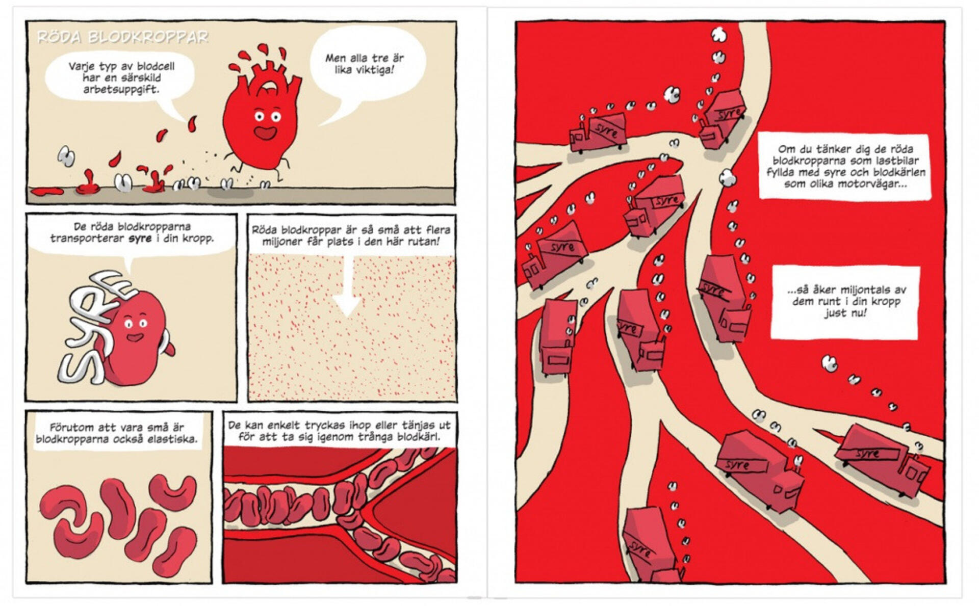 Serietecknad bok om blodet - en viktig komponent i naturens byggstenar.