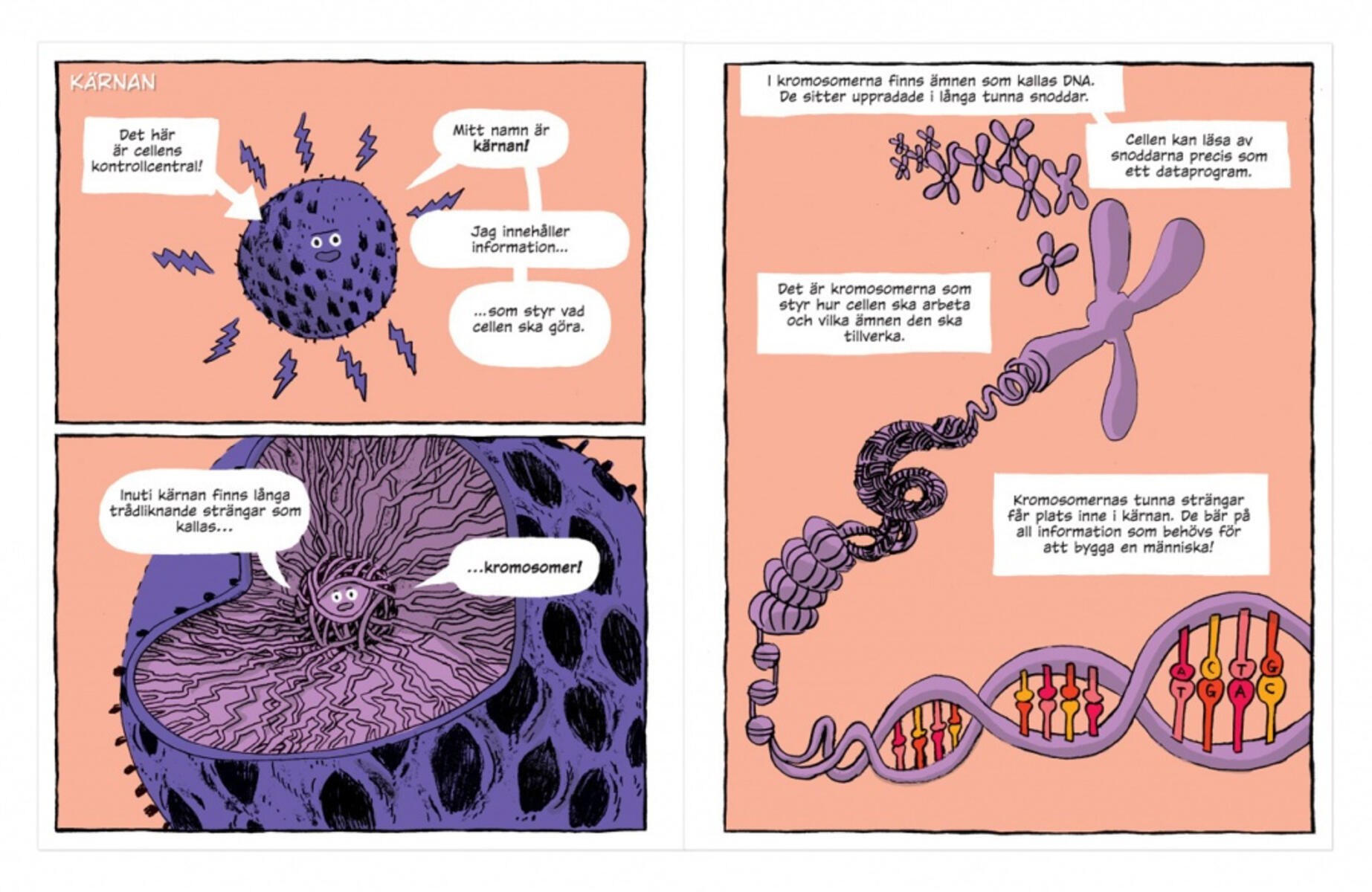 Naturens byggstenar är en bokserie med tydliga illustrationer i serieform. De färgglada bilderna gör det roligt att lära sig om hur kroppen är byggd och hur den fungerar. Böckernas enkla och humoristiska språk stimulerar läslusten och gör varje sida till en spännande resa bland celler, muskler och olika kroppsdelar.