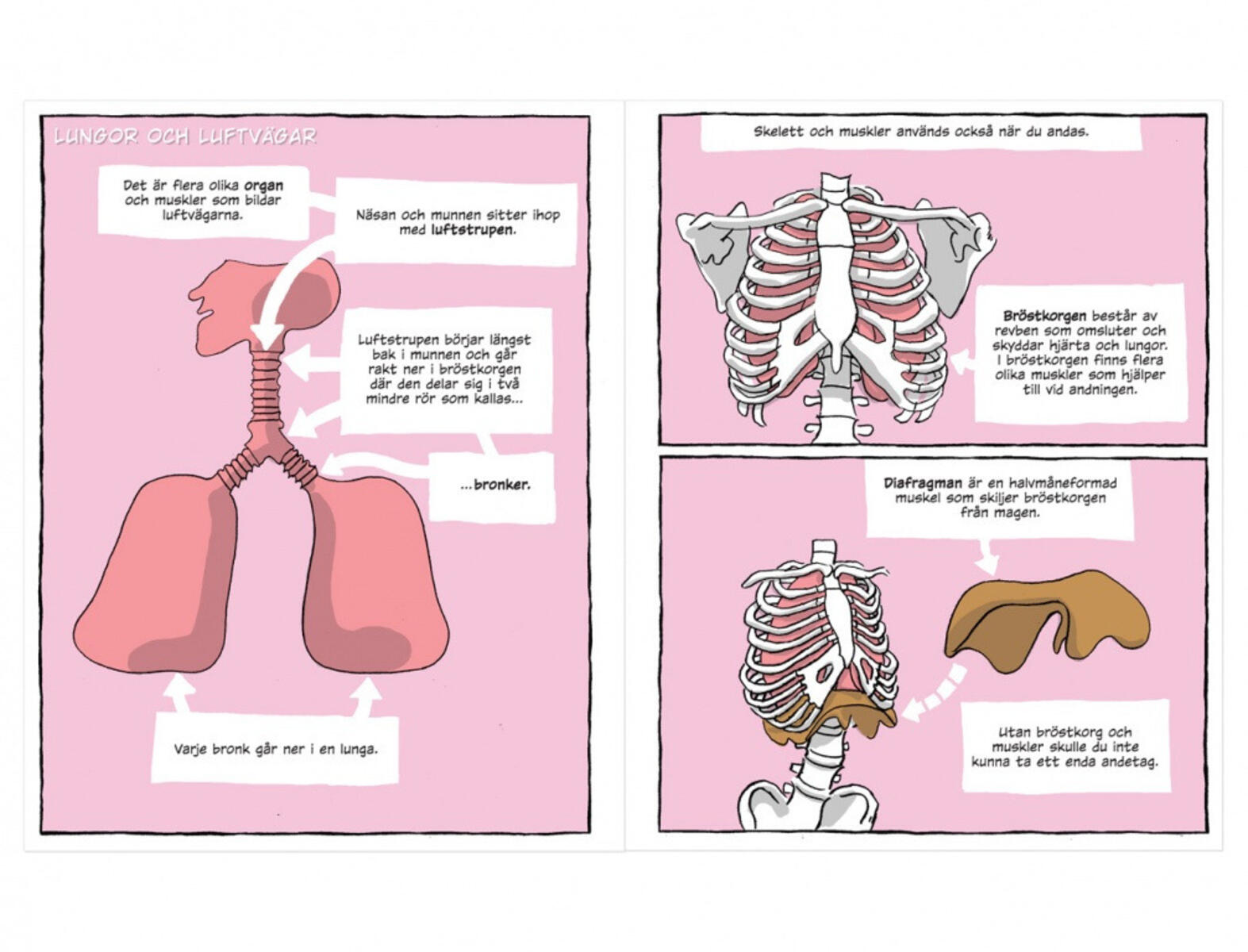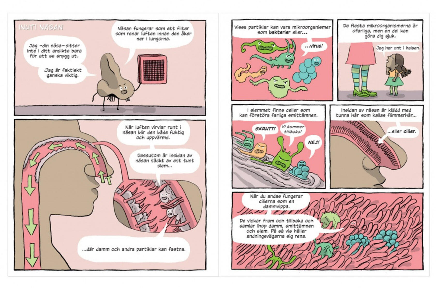 Naturens byggstenar är en bokserie med tydliga illustrationer i serieform. De färgglada bilderna gör det roligt att lära sig om hur kroppen är byggd och hur den fungerar. Böckernas enkla och humoristiska språk stimulerar läslusten och gör varje sida till en spännande resa bland celler, muskler och olika kroppsdelar.