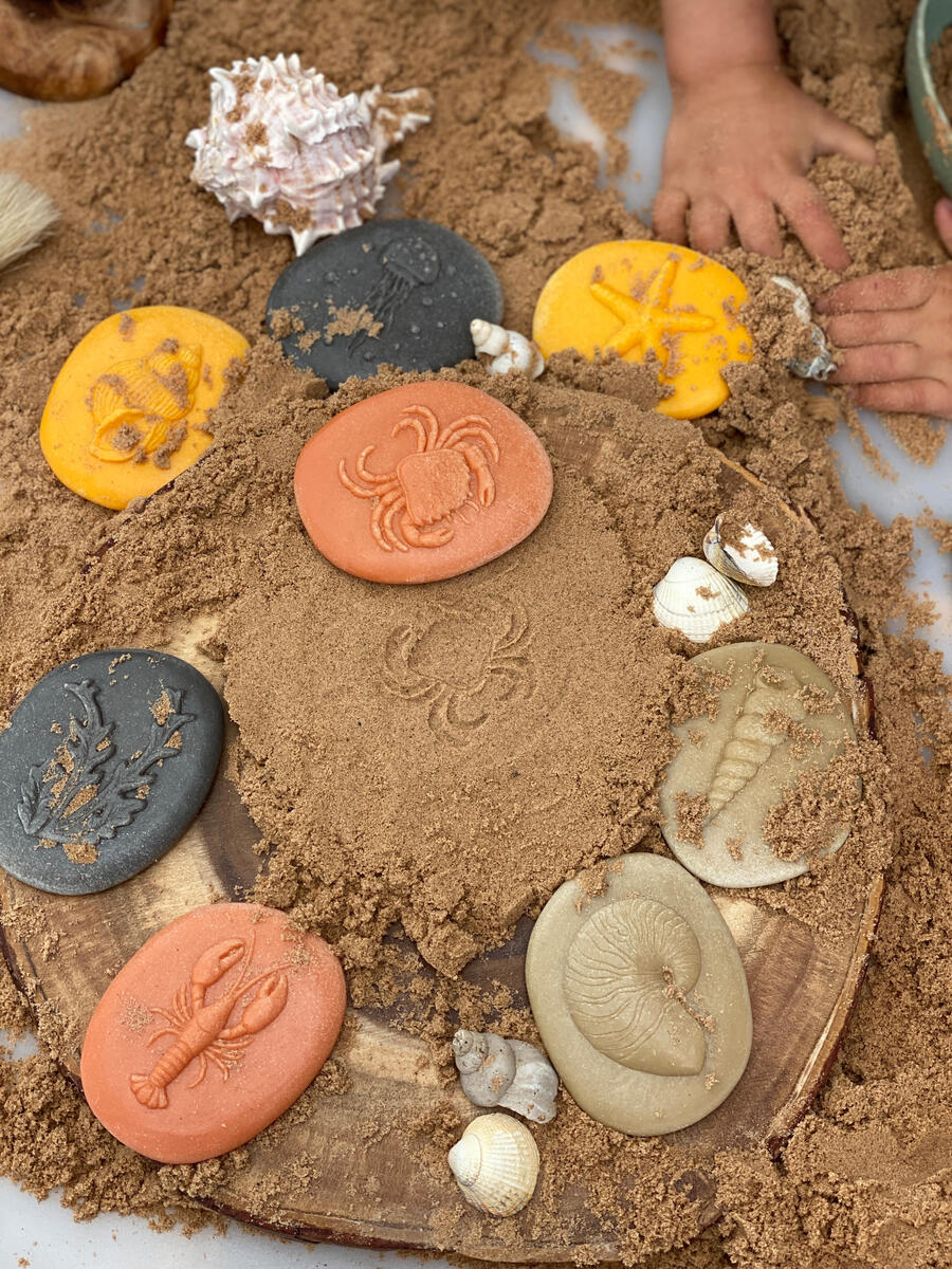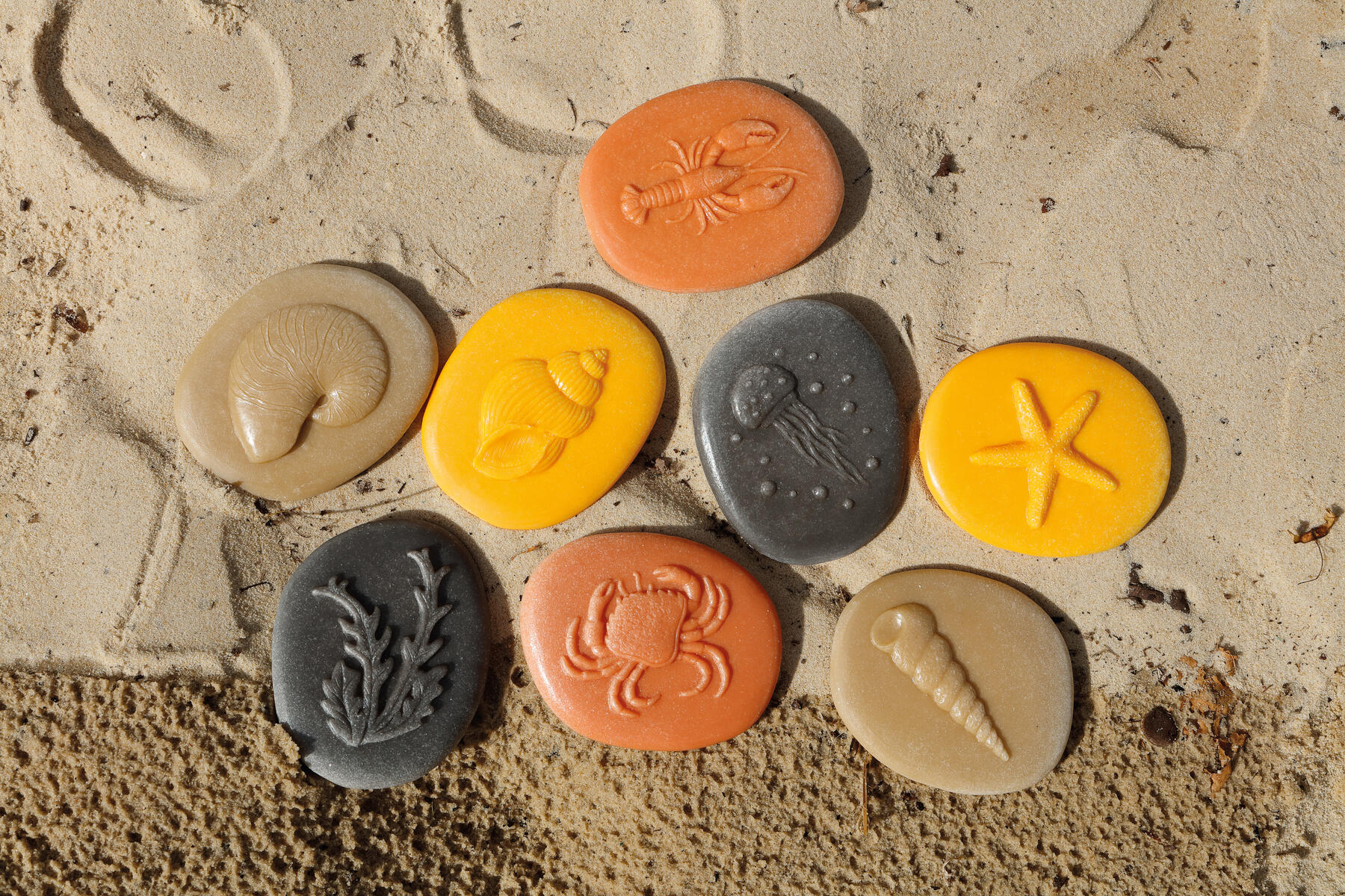 8 st/fp. Upptäck havets fantastiska djur- och växtvärld med dessa vackra, taktila stenar. Passar bra utomhus i vatten, lera och jord men även inomhus. Lätta att rengöra i vatten. Stenarna kan även användas i skapandet i leklera eller med kritor för skrubbteckningar. Innehåller: krabba, manet, hummer, sjöstjärna, valthornssnäcka, nautilussnäcka och strandsnäcka. Mått: Ca 80 mm. PVC-fri. Från 2 år.