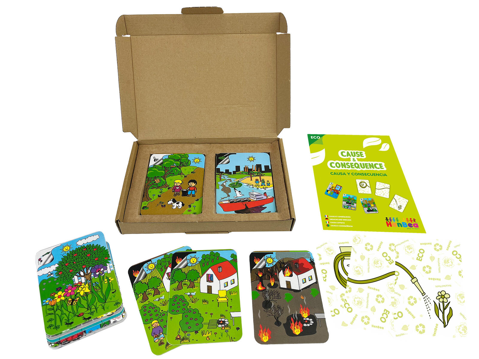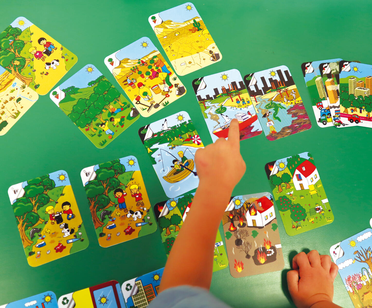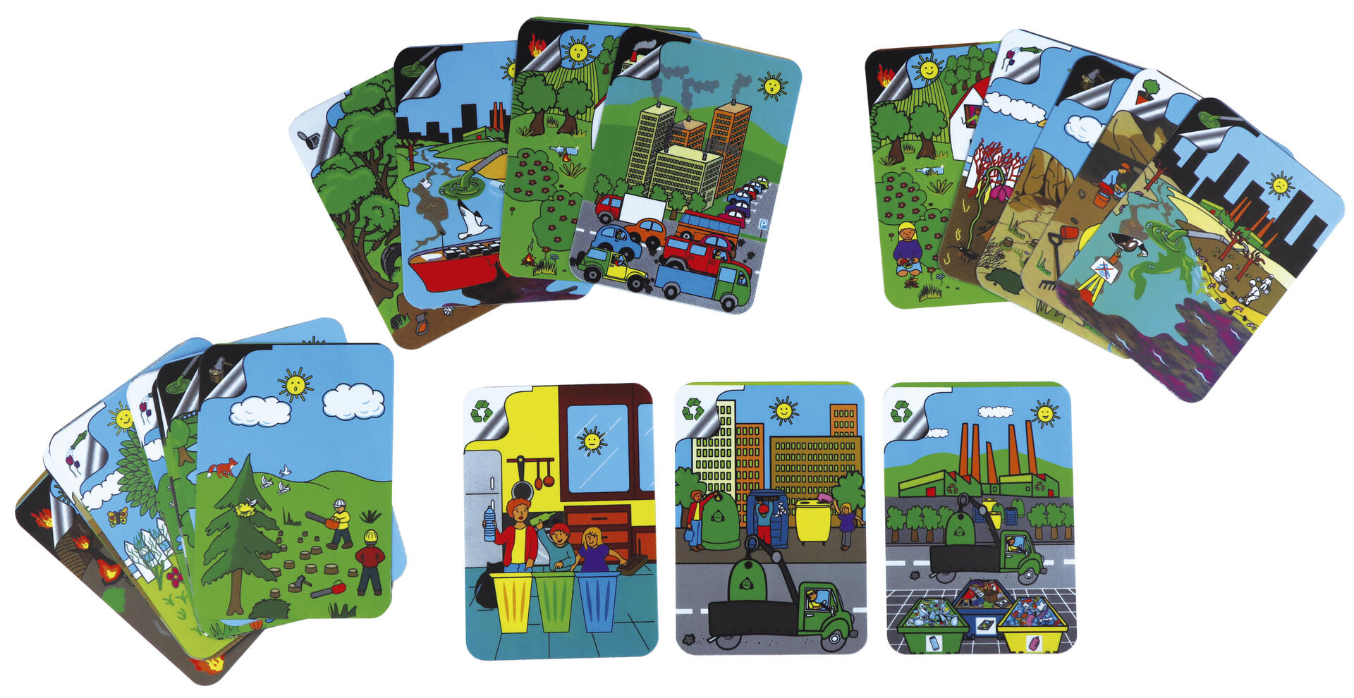 24 kort med enkla positiva och negativa sekvenser. Utveckla förståelsen för vikten av att ta hand om vår miljö. Material: återvunnen PP. Kortstorlek: 8,5x12 cm. Från 6 år.