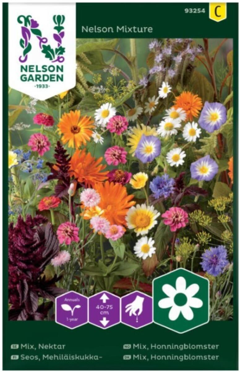 Nyttig och vacker blandning med utvalda sorter som ska locka till sig och ge nektar åt bin. Innhåller bl.a. reseda, gurkört, honungsfacelia och praktmalva. Trivs på lucker mullrik jord, men flera sorter är anspråkslösa. Räcker till 5 m direktsådd.