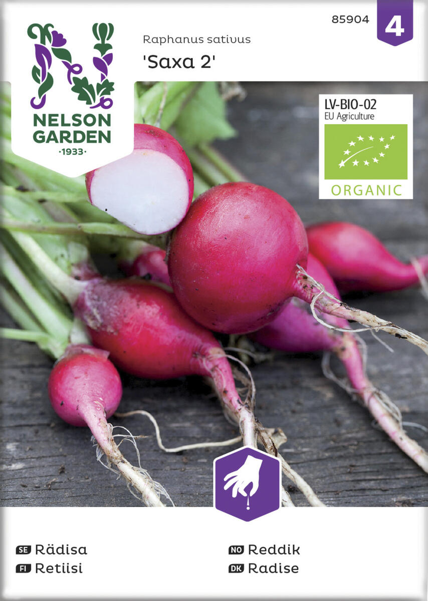 Ekologiskt frö. Smakrik rädisa som ger runda, helt röda rädisor. Skörda de späda rädisorna efter hand och ät dem färska. För att få jämn tillgång av krispiga rädisor bör sådd ske med några veckors mellanrum. Täck gärna med fiberduk.