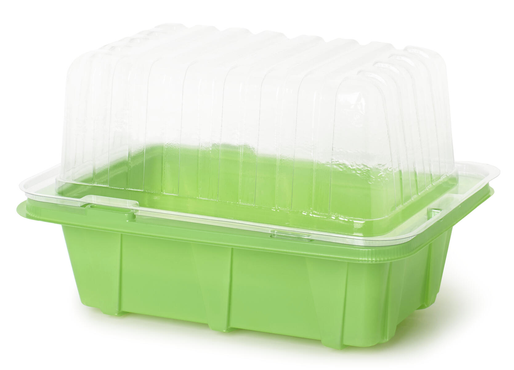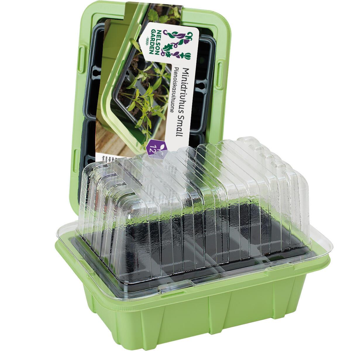 Inomhus odlingslåda för micro leaf som består av ett odlingstråg med dräneringshål, ett bottentråg och ett lock. Alla delar är av plast och diskas eller rengörs för hand med vatten och milt diskmedel. Mått: 23x16x18 cm. Av polystyren och PET.