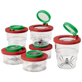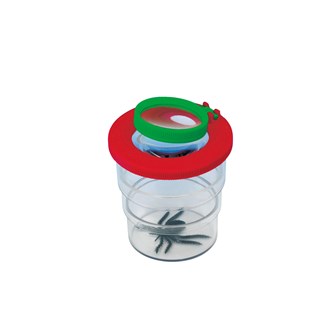 Förstorar 2x. Används förstoringsglaset på locket förstorar den 3,5x. Locket har 3 lufthål och burken går att fälla ihop. Akrylplast. Gröna och röda delar av ABS. PVC-fri. Från 3 år.