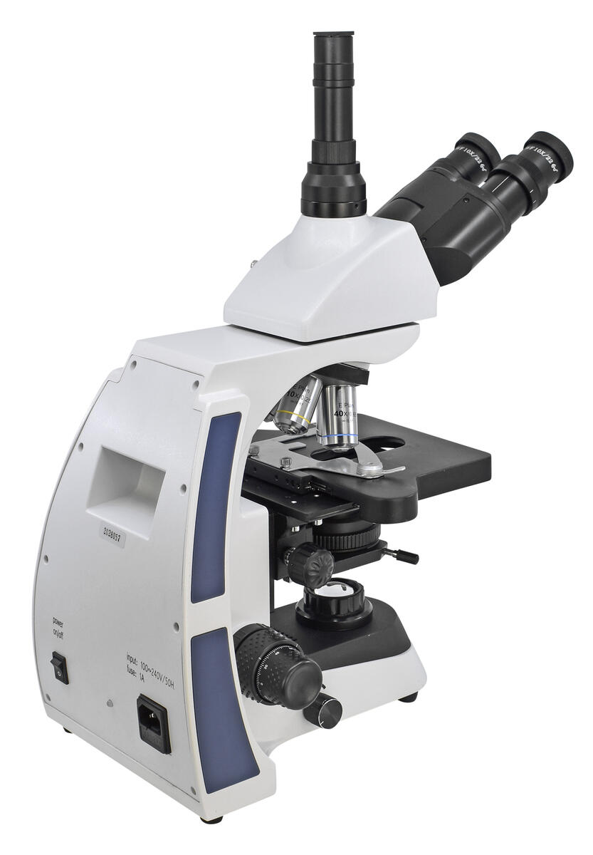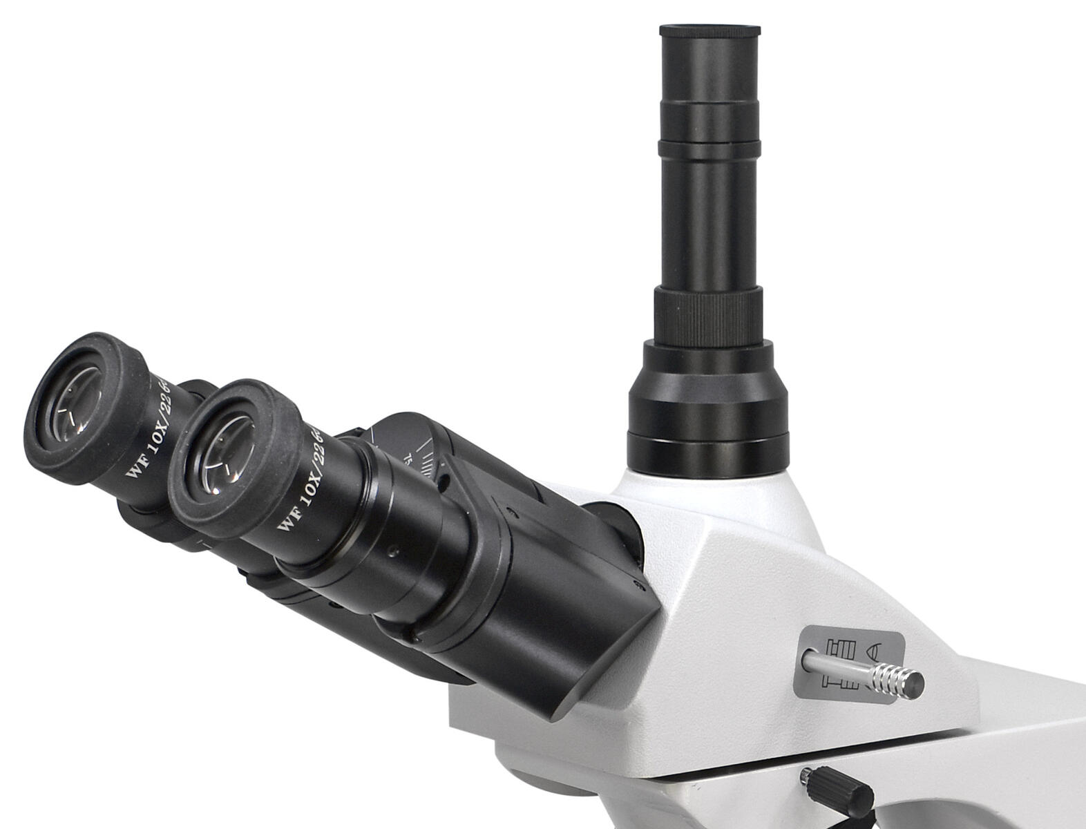 Mikroskop med trinokulärt huvud, 4 st högupplösta objektiv och två bredfältsokular (WF) inklusive planoptik som ger färgglada och tydliga bilder med hög kontrast. Den integrerade X-Y-preparathållaren är enkel att använda tack vare de ergonomiskt placerade koaxialkontrollerna. Abbe-kondensorn är lätt att byta ut mot olika tillbehör som mörkfälts- eller faskontrastkondensorer. Kondensorn kan justeras i höjdled med hjälp av kuggstångssystemet. Alla optiska ytor (okular och objektiv) är belagda med ett antisvampskikt. Den nya generationens LED-belysning ger komfort och vila för ögat. Lysdiodens spektrum är lika med naturligt dagsljus och är justerbar i intensitet. LED-ljuskällan är jämförbar med en 30 W halogenljuskälla.