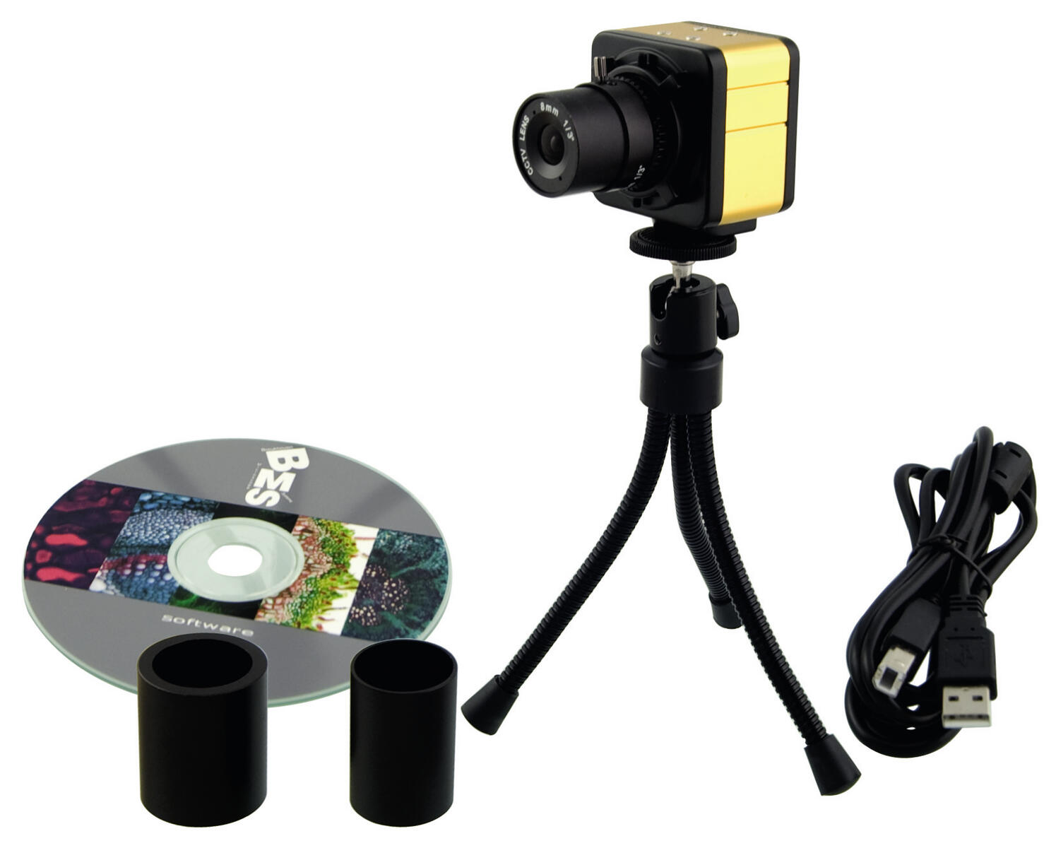 Mikroskopkamera med 1,3 megapixel överför mikroskopets vy till datorn. Bilderna kan sedan projiceras så att flera kan titta samtidigt. Utmärkt även för yngre elever som har svårt att fokusera i ett mikroskop. Upplösning: 1280x1008. Dynamiskt omfång, DR, om minst 62 dB. Objektiv: 8 mm C-fäste i metallhölje. Brännvidd 50 mm–oändligt. Automatiskt irismembran. Ljuskänslighet 3,0 lux. Strömförsörjning via USB 1.0 och 2.0. Operativsystem: Windows XP (SP2/3), Vista och W7. Tillbehör som medföljer: CD (BMS_pix), stativ, adapter för stereomikroskop och biologiskt mikroskop samt USB-kabel. OBS! Mikroskop ingår ej.