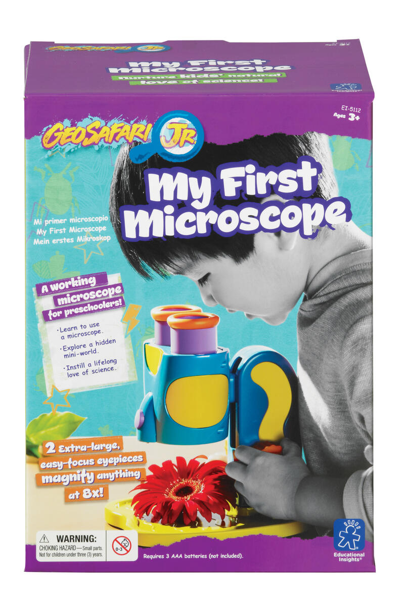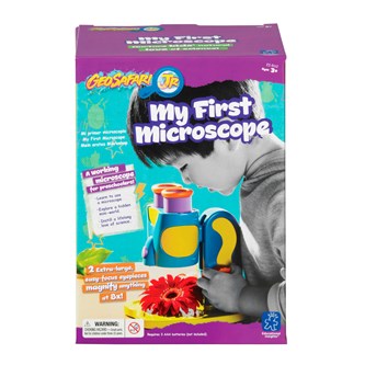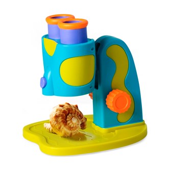 Idealiskt första mikroskop för de yngre barnen. Två titthål gör det lättare att titta då de slipper att stänga ena ögat. Fokusjustering för enkel fokusering. LED-lampa för förbättrad visning av små detaljer. Kräver 3 st AAA-batterier (ingår ej). Från 3 år.