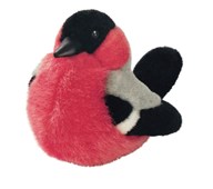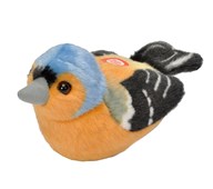 Verklighetstrogen fågel i plysch. När man trycker på den härmar den bofinkens läte. Storlek 13-16 cm.