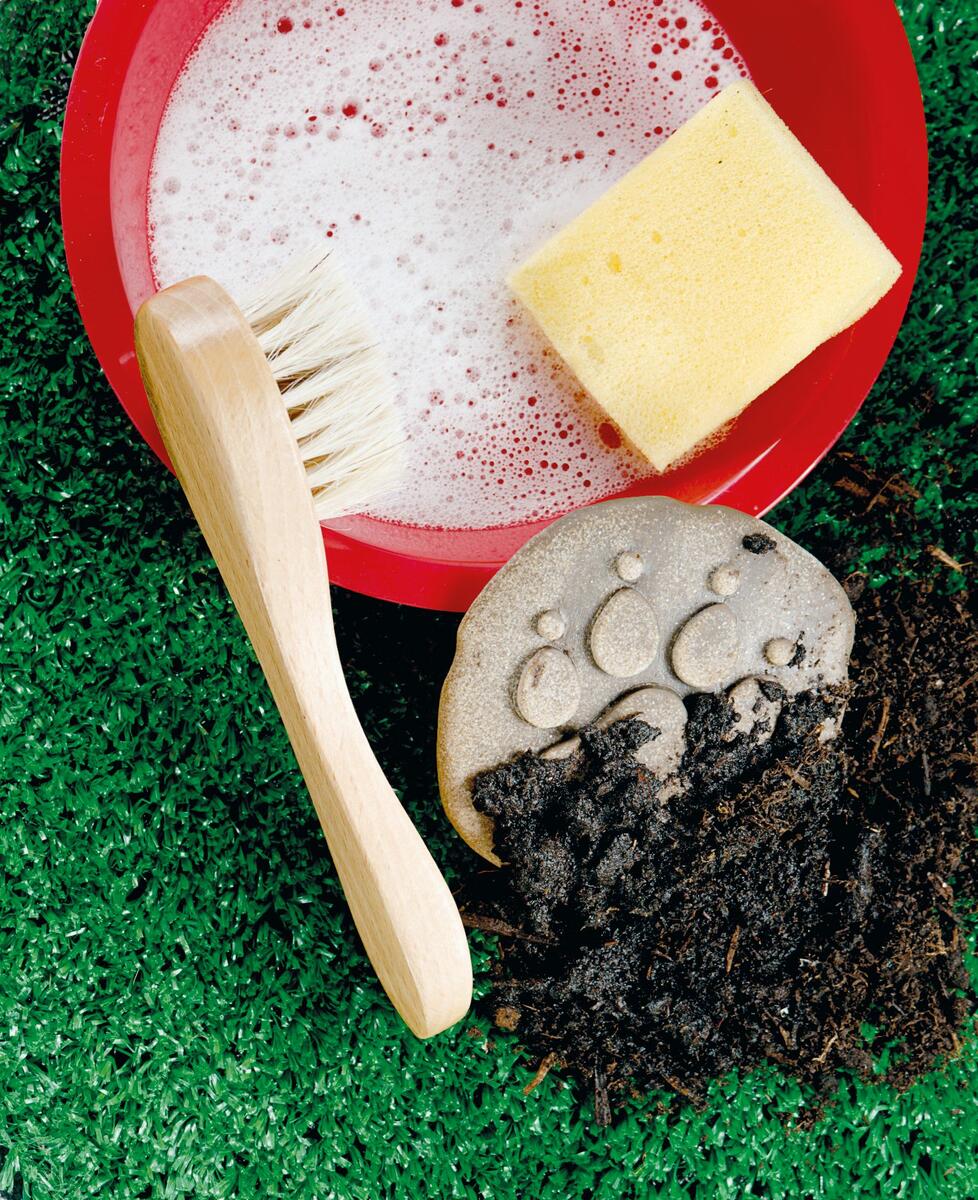 8 st/fp. Varje dubbelsidig sten har ett fotavtryck på ena sidan och en bild av djuret på andra sidan. Gör t.ex. fotavtryck i sand eller jord och skapa ett spår för barnen att följa. Kan också användas för sorteringsövningar o.s.v. Innehåller ko, häst, får, gris, hund, katt, kyckling och anka. Tillverkade av en slitstark stenblandning för utomhusbruk. PVC-fri. Från 3 år.