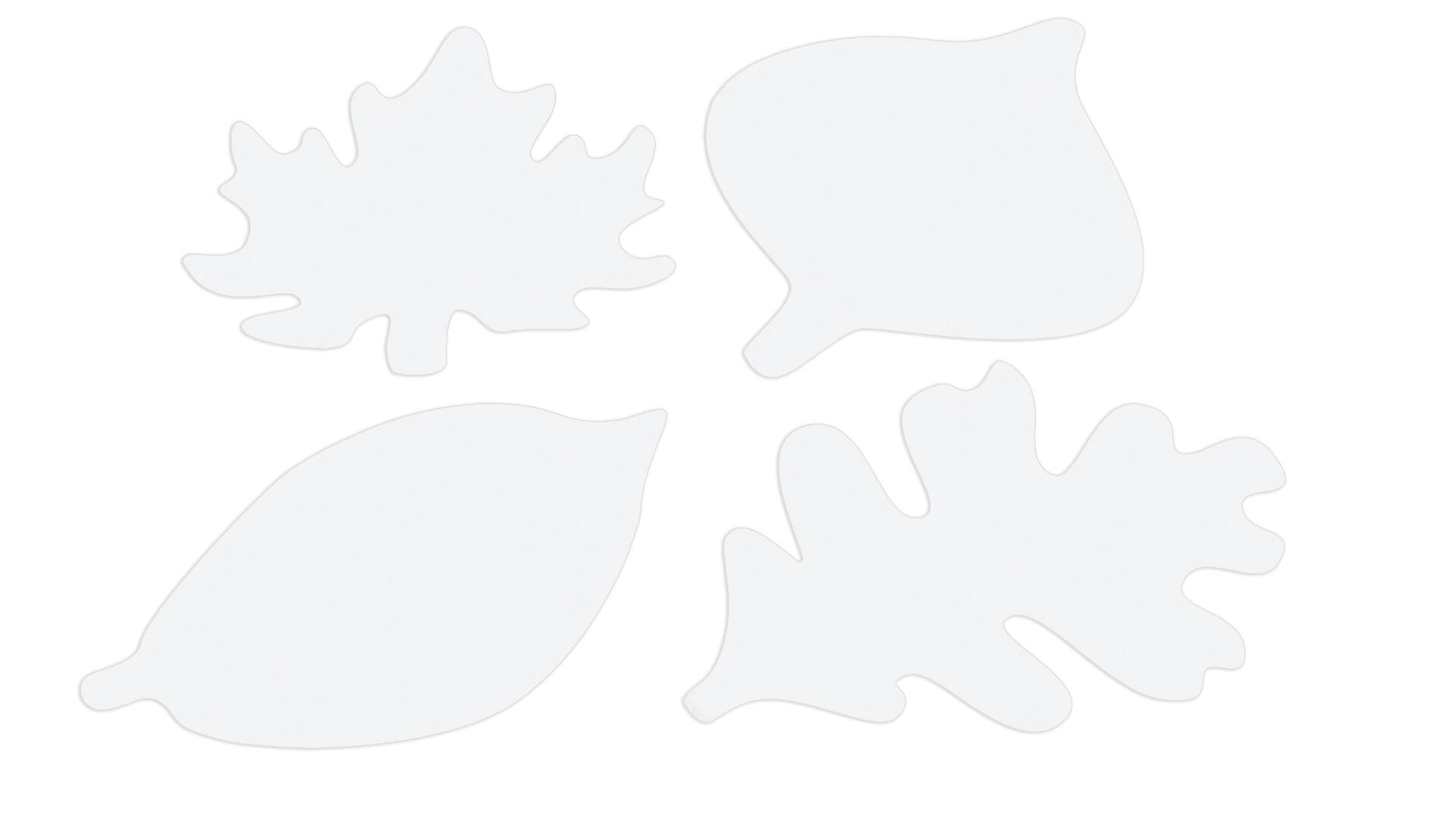 24 st/fp. Stora löv att använda för att kombinera undervisning med skapande. Måla löven som de ser ut på hösten och våren eller skapa egna fantasilöv. Gör ett hål i dem och häng upp i taket, eller skapa ett träd inomhus. Innehåller 4 olika former. Mått: L45,5xB38 cm. Av vit kartong. PVC-fri.
