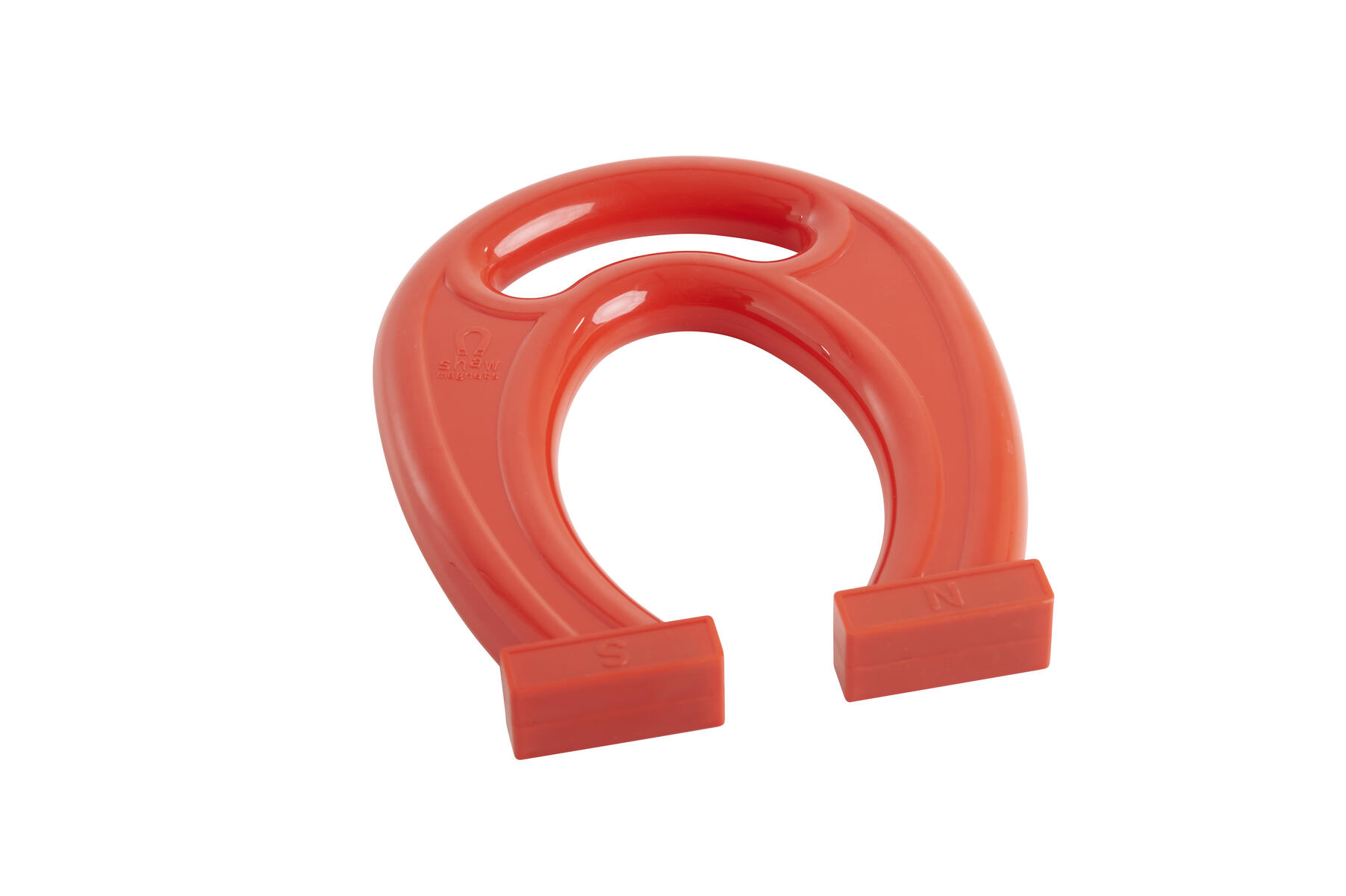 Kraftiga neodymmagneter i plasthölje med handtag. Den blå är nordpol, den röda sydpol. Det behövs ett rejält krafttag för att dra isär dem. Se upp så ni inte klämmer fingrarna! Från 3 år.