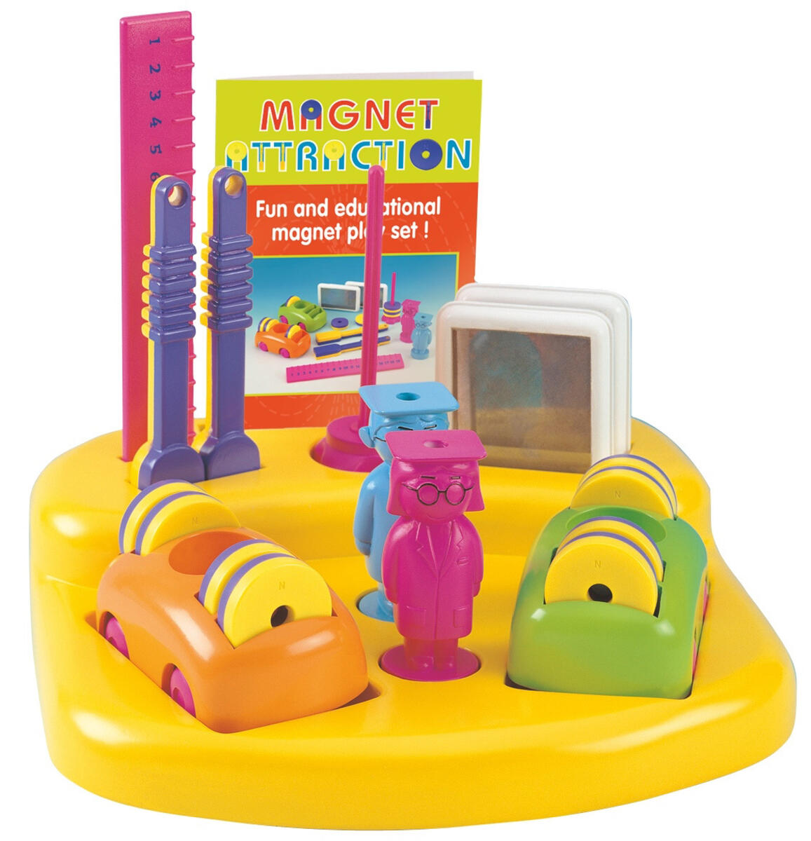 Ett spel där barnen får möjlighet att observera, experimentera och uppleva det fascinerande med magneter. Prova att bygga efter förslagen på bildkorten och upptäck hur magneterna ibland attraherar varandra och ibland svävar fritt över varandra på stativet. Innehåller 8 ringformade magnetiska brickor, 2 höga stativ (10 cm), 70 fotografiska bildkort i storleken 7x13,5 cm samt 2 stativ till bildkorten. PVC-fri. Från 3 år.