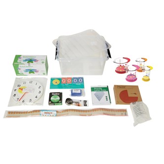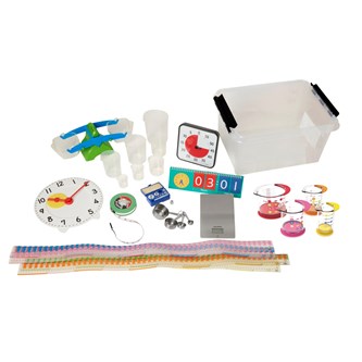 Paket för att träna jämförelser och uppskattningar av storheter. Här finns pedagogiska produkter där eleverna på ett kreativt och konkret sätt utvecklar sina förmågor kring längd, vikt, volym och tid. I detta heltäckande set ingår måttband, linjaler, vikter, balansvåg och elektronisk våg. Graderade bägare och rymdmått med olika höjder och former, måttsats, undervisningsklocka, TimeTimer och material för att träna samband mellan den analoga och digitala klockan. Ålder: 6-9.