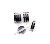 9 vikter i mässing förpackade i stadig plastlåda. Innehåll: 1 st 100 g, 1 st 50 g, 1 st 20 g, 2 st 10 g, 1 st 5 g, 2 st 2 g, 1 st 1 g och 1 pincett. Låda och pincett av ABS.