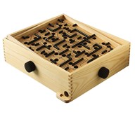 Spelplanen manövreras med två rattar så att kulan följer den markerade vägen. Den som för kulan längst utan att den ramlar ner i något hål vinner. Mått: 35x30,5x9,5 cm. Av trä. PVC-fri. Från 6 år.