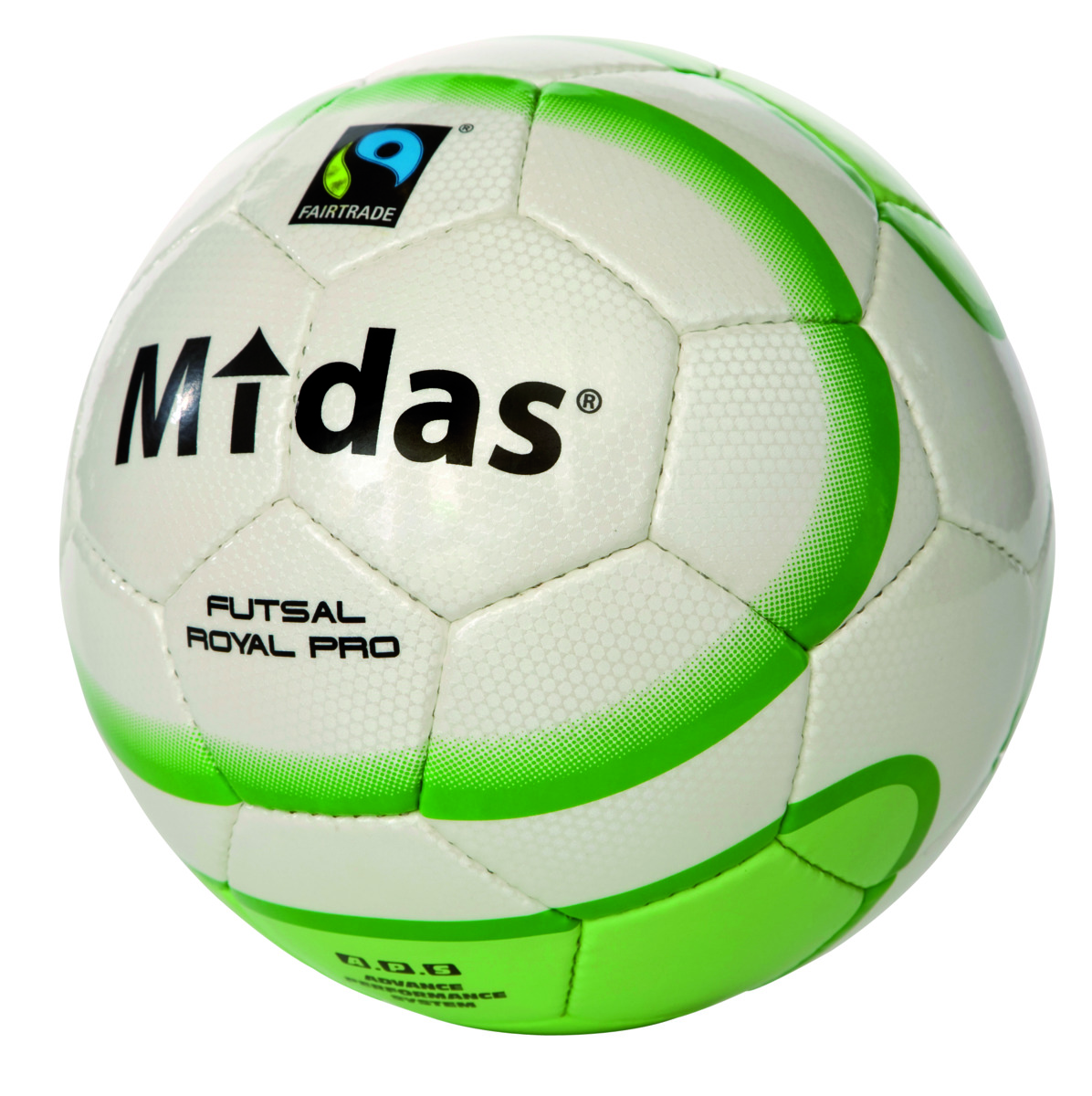 Midas Futsal Royal Pro är en slitstark futsalboll med låg studs som gör det enklare att styra bollen på hårda ytor. En bra futsalboll till ungdomar. Omkrets 62-64 cm. Fairtrade-märkt. Av PU.