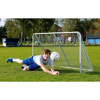 Fotbollsmål i galvaniserat stål med kraftig, förstärkt, helsvetsad stålram. En mycket tålig konstruktion. Vikt: 30 kg. Mått: 200x100x60 cm. Levereras monterat.